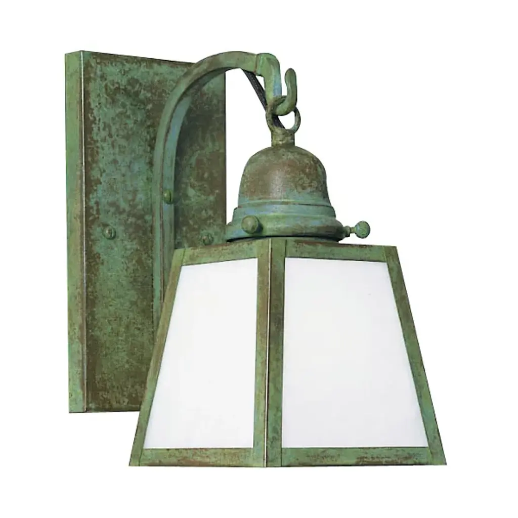 Clean and simple, the Arroyo Craftsman A-Line Arch Arm Wall Sconce impresses with its straight metal framing and unadorned dome. A hook and eye accent gives the sconce a charm reminiscent of simpler times. Dress up the look with the T-Bar Overlay option. Rated for damp locations, this sconce is a beautiful accent to Arts and Crafts bathrooms.