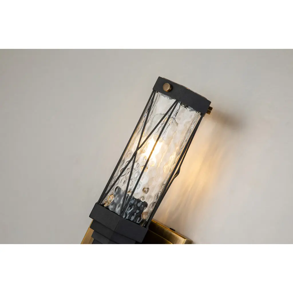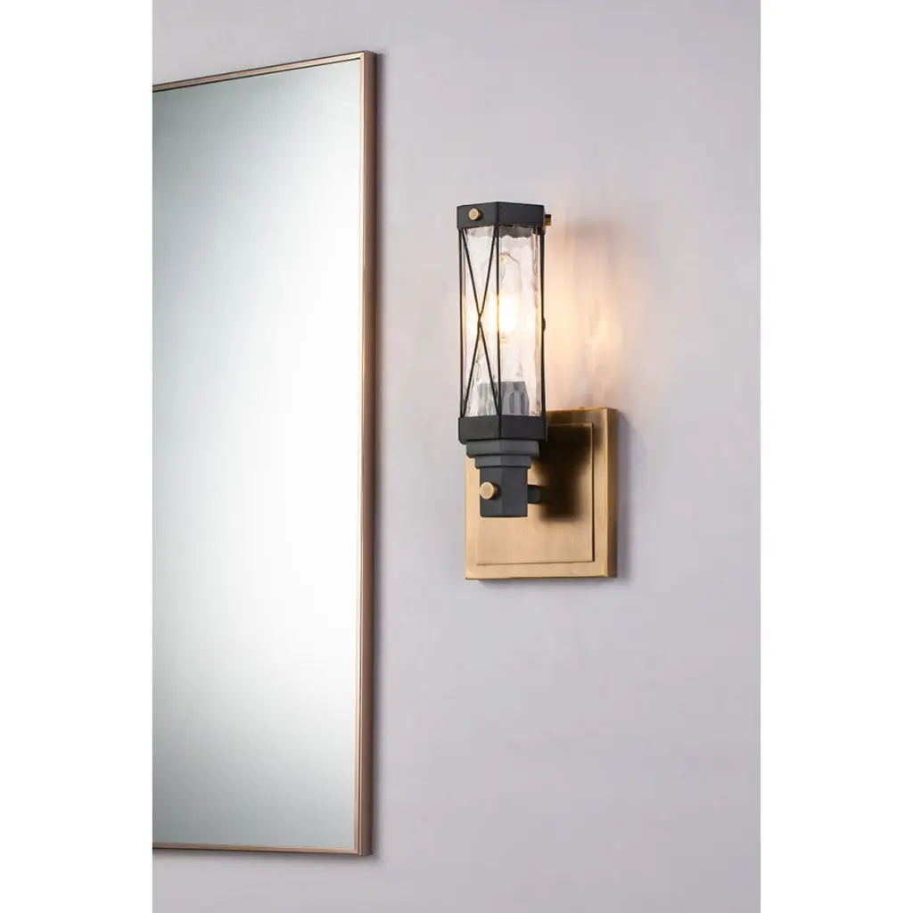 Charming and vintage inspired, the Abbey 1-light wall sconce uses a mixed aged brass and black finish to give a genuine and edgy style that makes sure you won’t forget it. It’s shaped like a hexagon and has a bold-looking X alternating pattern on the water glass allowing these elements to work together providing this fixture with its own distinctive style. This wall lantern has cylinder shaped glass, can be installed facing up or down, and uses a modern crisp shape to update your bathroom space. The Square back plate finished in aged brass is the perfect finishing detail.