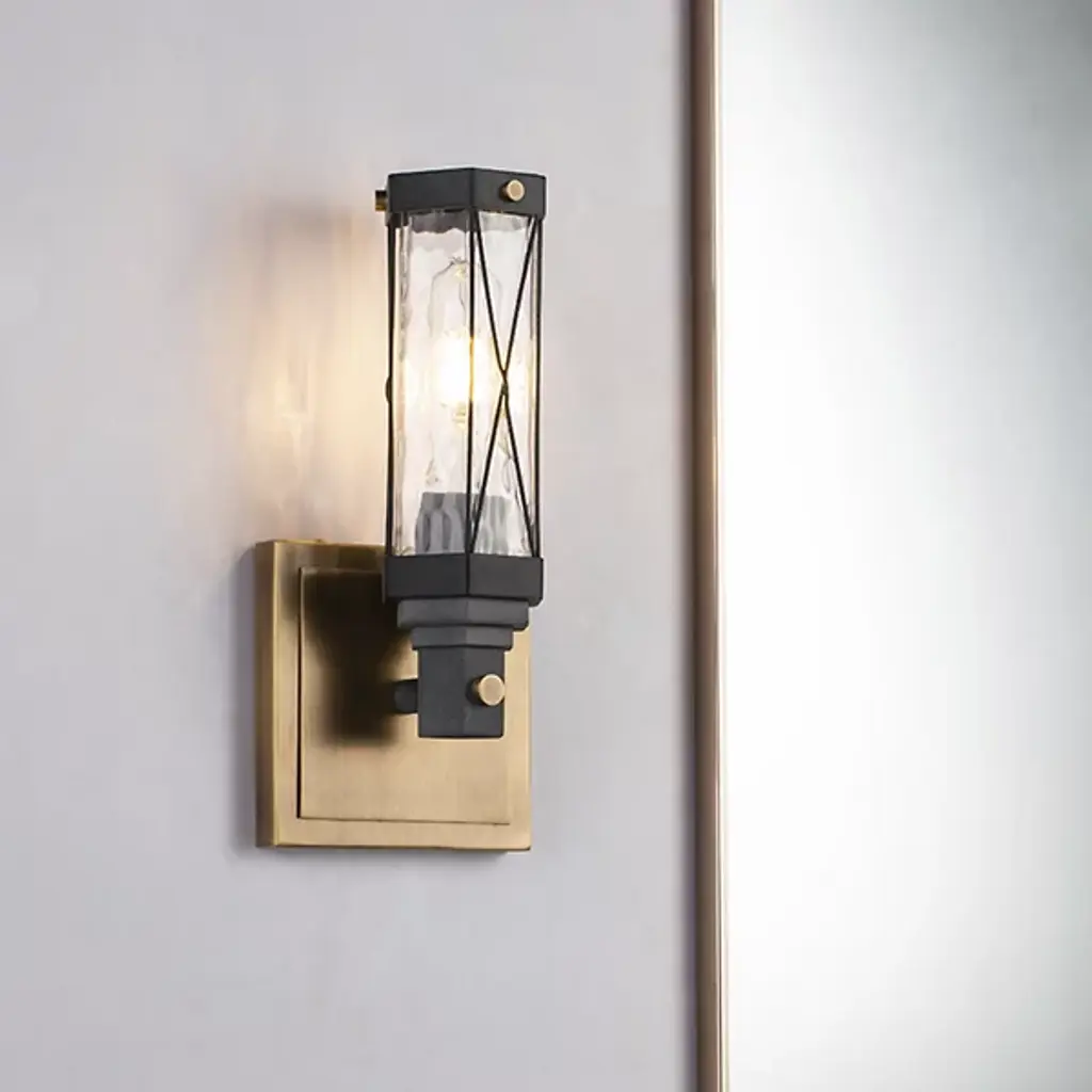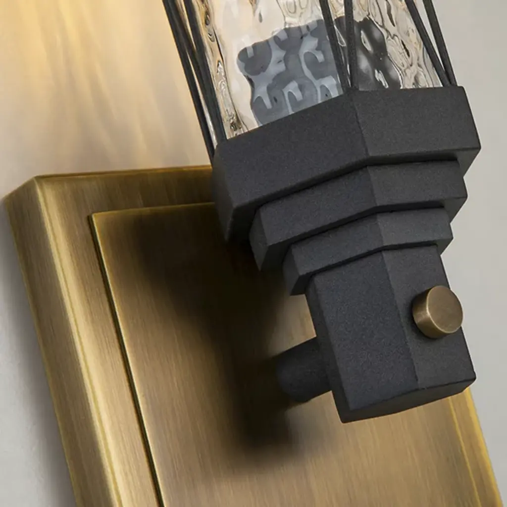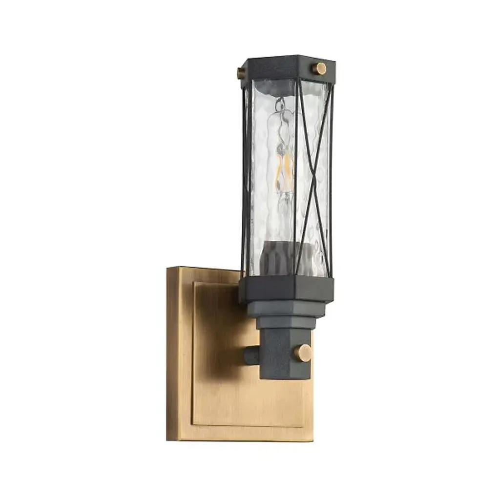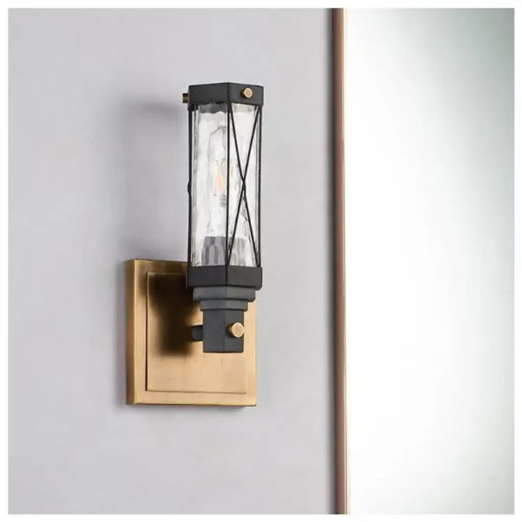 The Abbey Wall Sconce from Lucas McKearn introduces a genuine and edgy style that leaves a lasting impression. It stands out with a hexagonal form sporting bold X-shaped lines. Water glass backs these lines, adding an elegant texture that softens up the outpouring light. This light can be arranged facing up or down. Metal hardware and contrasting finishes support the piece with an elegant antique personality.