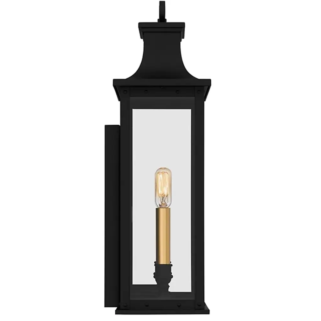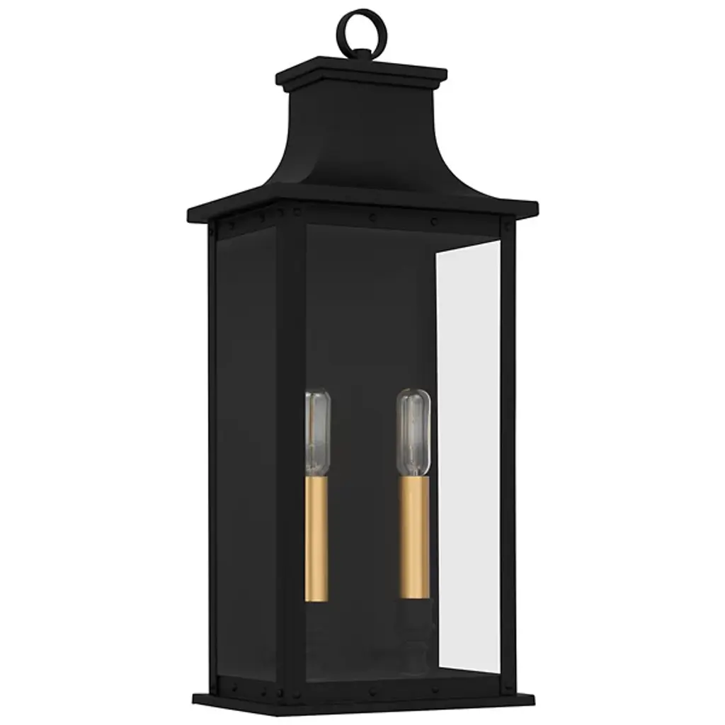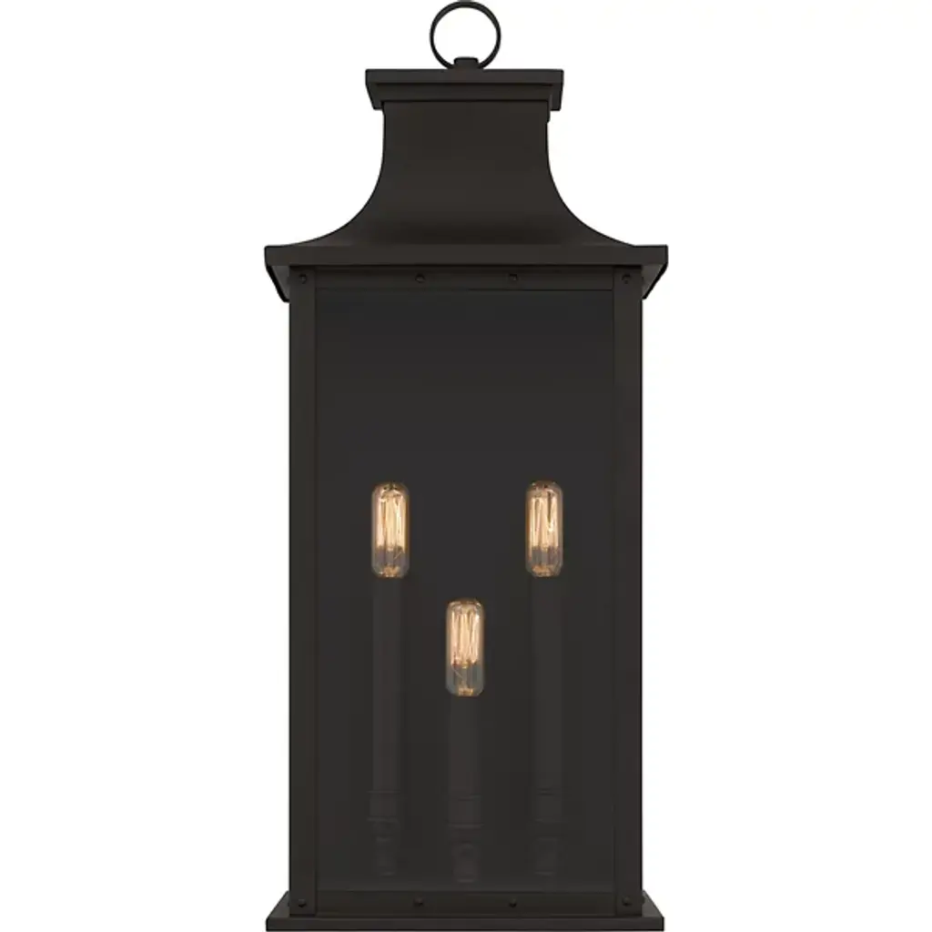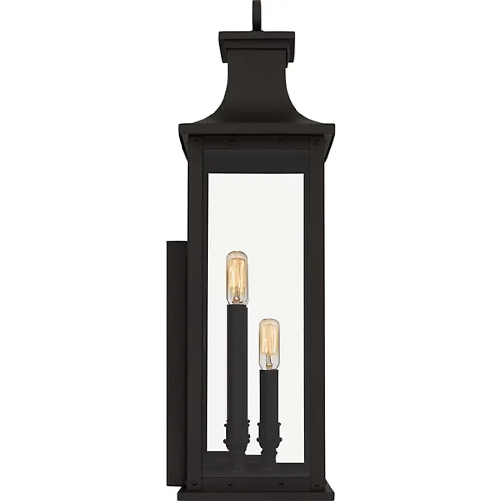 The Abernathy Outdoor Wall Sconce from Quoizel combines traditional style with industrial accents, creating a remarkable exterior lighting solution. This lantern features a matte frame with clear tempered glass panels, allowing the internal light source to shine through brilliantly. The fixture is decked with candle covers, adding a pop of contrast. Constructed from Coastal Armour aluminum, the wall lantern is built to withstand harsh outdoor elements, making it ideal for coastal environments.