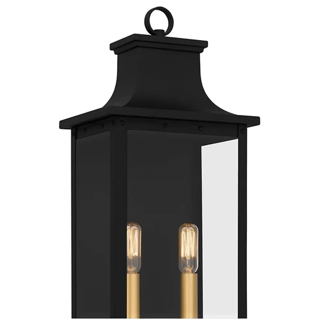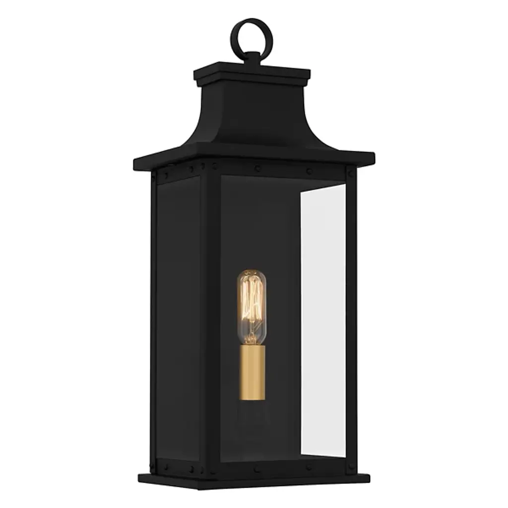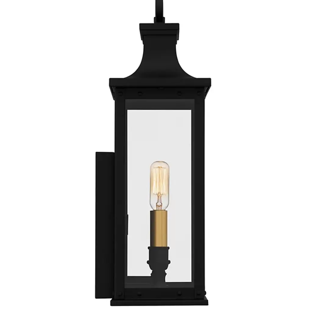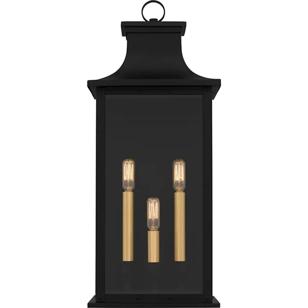 The Abernathy Outdoor Wall Sconce from Quoizel combines traditional style with industrial accents, creating a remarkable exterior lighting solution. This lantern features a matte frame with clear tempered glass panels, allowing the internal light source to shine through brilliantly. The fixture is decked with candle covers, adding a pop of contrast. Constructed from Coastal Armour aluminum, the wall lantern is built to withstand harsh outdoor elements, making it ideal for coastal environments.