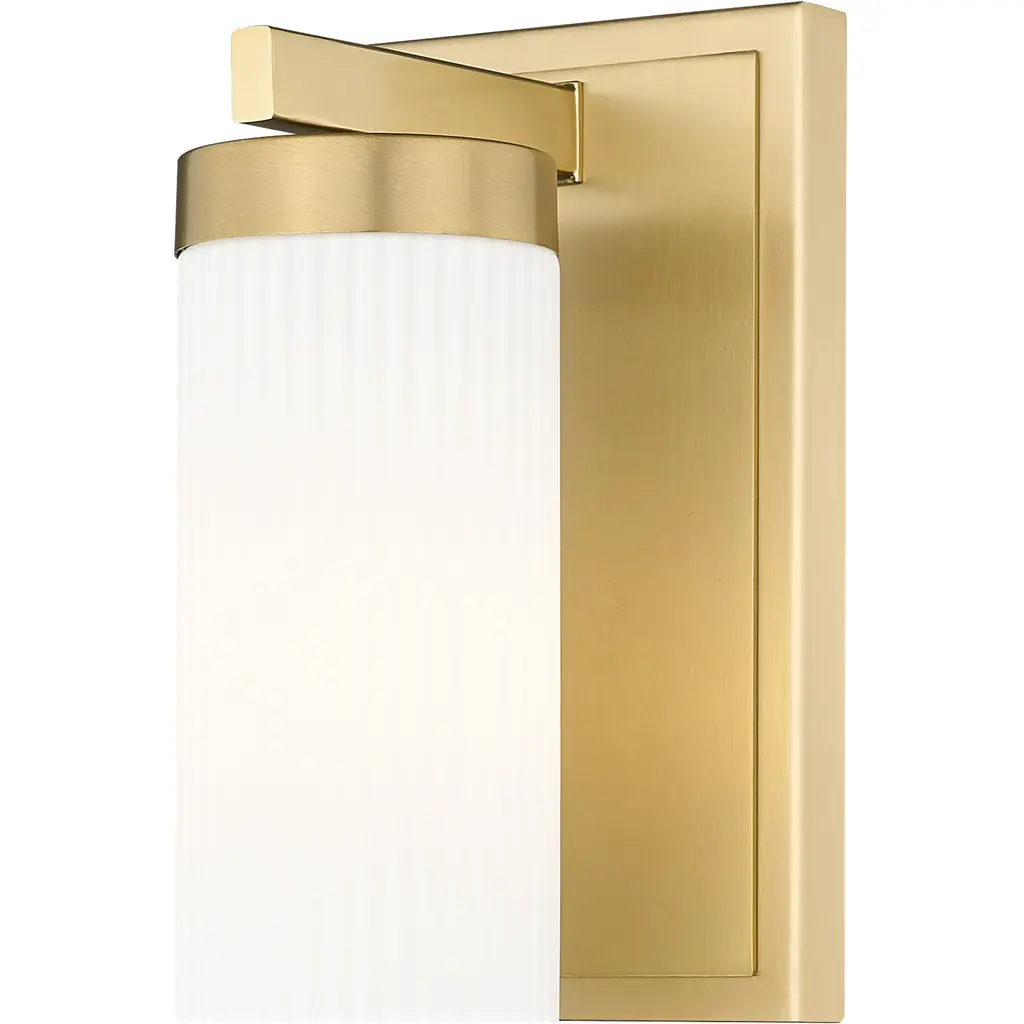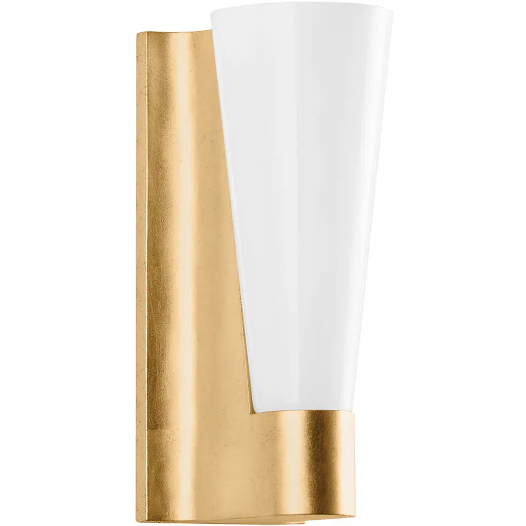 Architectural form meets vintage sparkle in the stately Abner sconce from Troy Lighting. A sculptural steel backplate extends from the wall, angling out to hold an opal glass shade. Warm light glows softly around the transitional fixture as it reflects beautifully off the vintage metalwork. The sconce feels comfortable and inviting with its deco-inspired sophistication, lighting up your space with a touch of timeless glamour. This damp-listed sconce combines versatile illumination with art deco style for an exquisite accent piece.