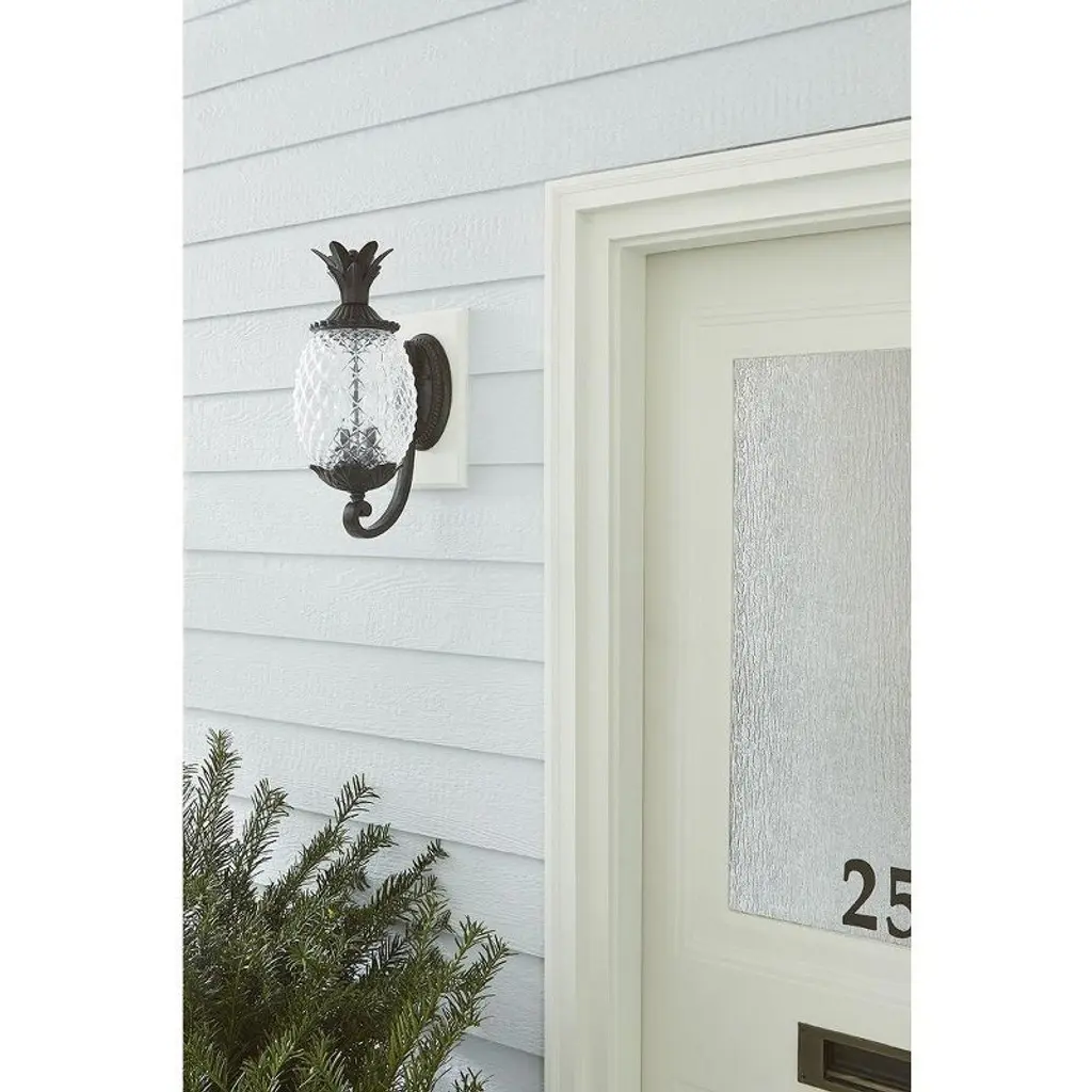 This Two Light Wall Lantern has a Black Finish and is part of the Lanai Collection. Shade Included.. Back Plate Height: 8.00 / Back Plate Width: 4.75. , Material: Aluminum, Finish Color: Black Coral, Width: 7.25", Height: 18", Depth: 9.25", Backplate Width: 4.75", Backplate Length: 8", Number Of Bulbs: 2, Wattage: 60 Watts, Dimmable: No, Moisture Rating: Dry Rated