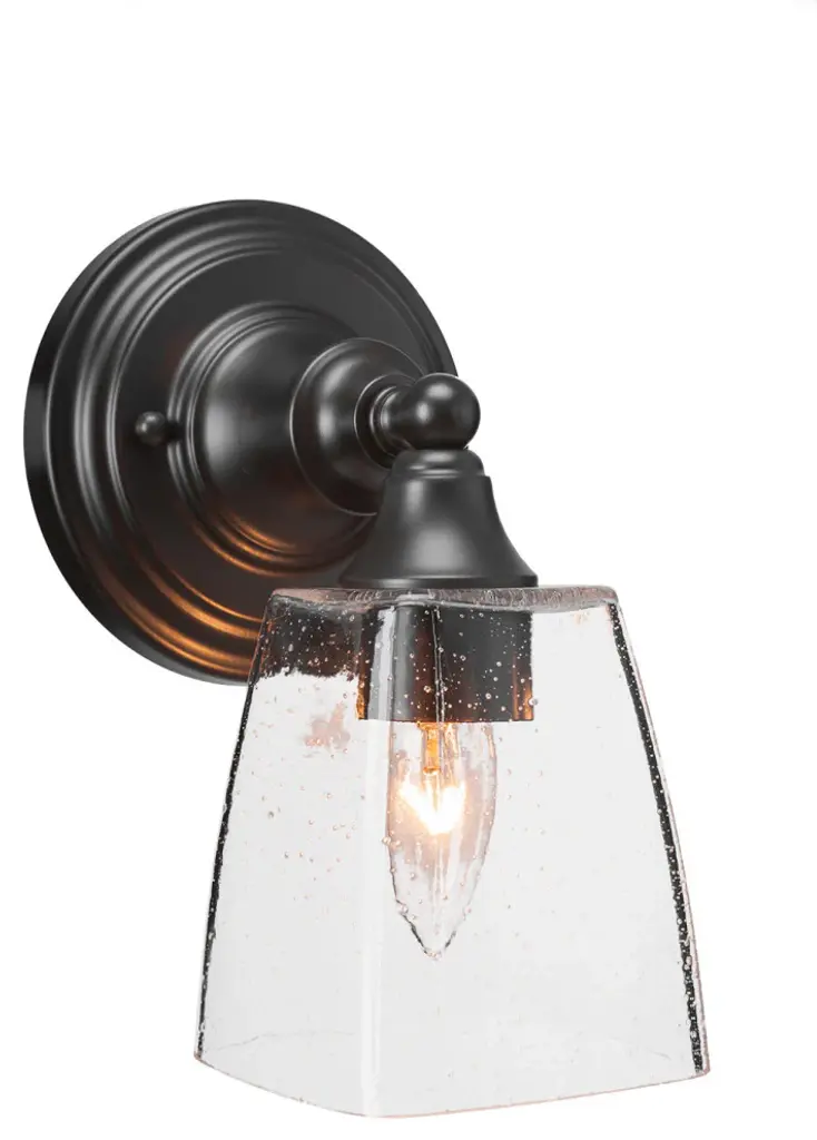 Mae offers a transitional style that will enhance the look and feel of any bath. A modest framework highlighted by soft, rounded accents paired with beautiful, hand-blown clear optic glass. Available in chrome and oil-rubbed bronze. Sconce Chrome Finish Can Be Mounted In The Up or Down Position Clear, Optic Cone Shaped Glass Requires 1, 100-Watt Max, Medium Base Bulb Installation Hardware Included 1 Year Warranty. 1 YearShade Included: Yes / Dimmable: Yes. Mounting Direction: Up or Down / Assembly Required: Yes / Shade Included: Yes / Dimmable: Yes. ,