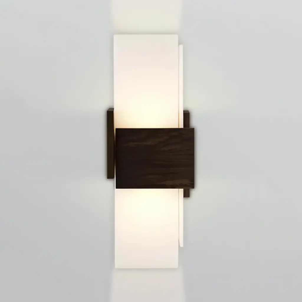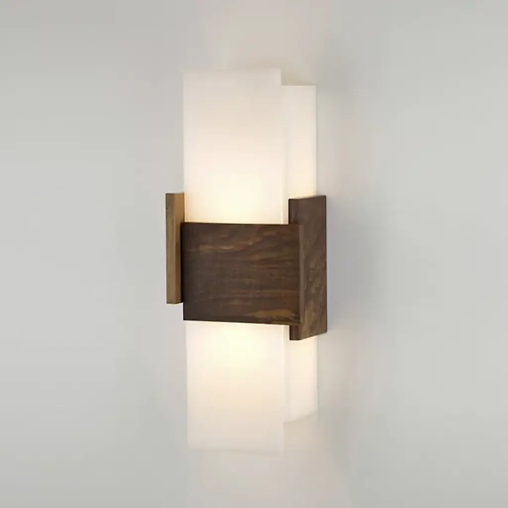 The name the Cerno Acuo LED Wall Sconce comes from the Latin " sharpen." It's quite appropriate, considering the design is made up entirely sharp angles. It has rectangular Frosted polymer panels surrounded by smaller rectangles walnut. The light the included LEDs is diffused softly outward as well as up and down a wall.