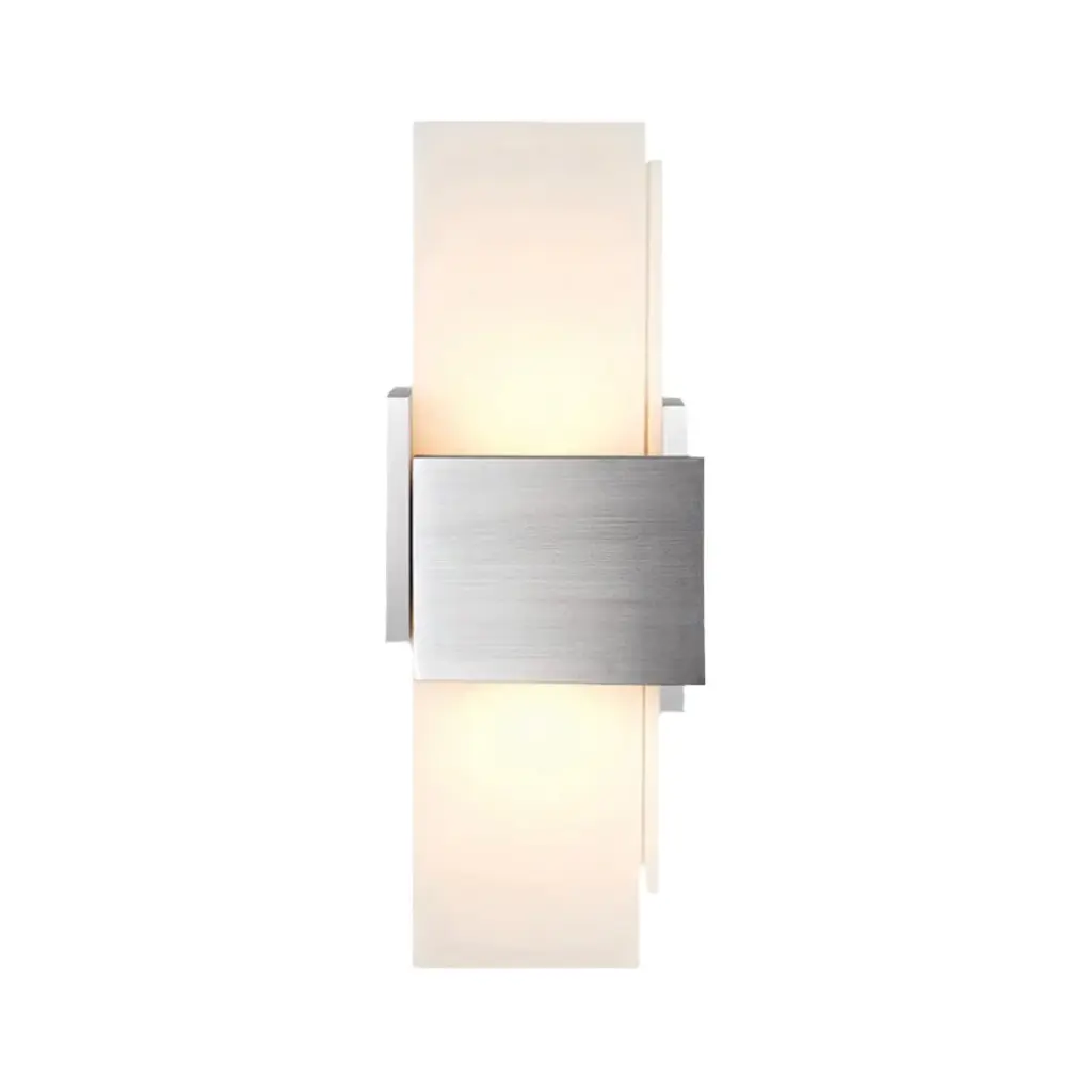 Experience the beauty of form and function with the Acuo Wall Light from Cerno. This sculptural piece is crafted from solid American black walnut, showcasing its beautiful natural grain. The 3 sided box design creates an interesting and complex shape, while the overlapping and void elements add dimension to your wall. Perfect for hallways, bedrooms, or flanking either side of a fireplace mantle, illuminate any space with style and sophistication. Highlights
