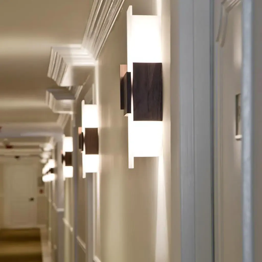 Experience the beauty of form and function with the Acuo Wall Light from Cerno. This sculptural piece is crafted from solid American black walnut, showcasing its beautiful natural grain. The 3 sided box design creates an interesting and complex shape, while the overlapping and void elements add dimension to your wall. Perfect for hallways, bedrooms, or flanking either side of a fireplace mantle, illuminate any space with style and sophistication. Highlights