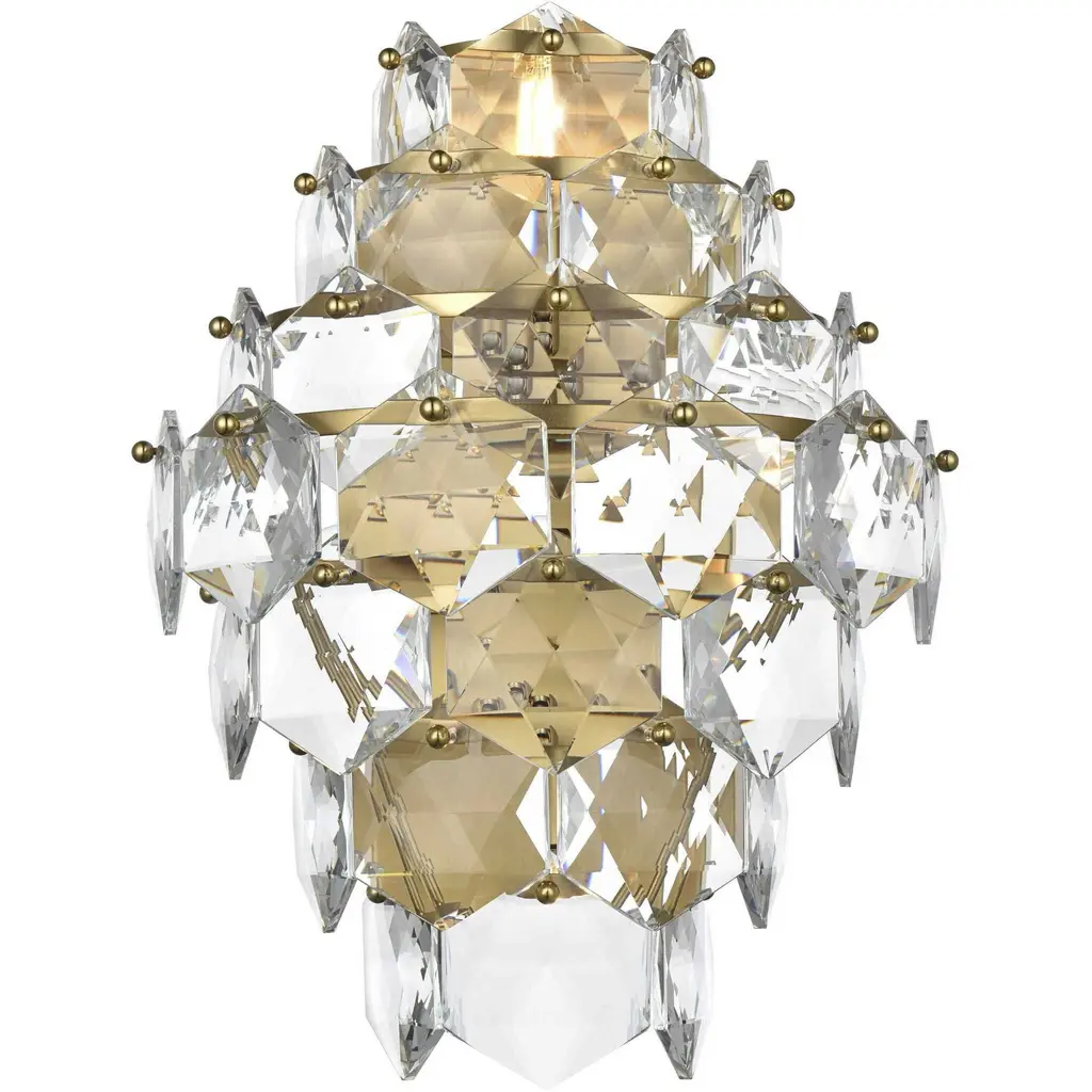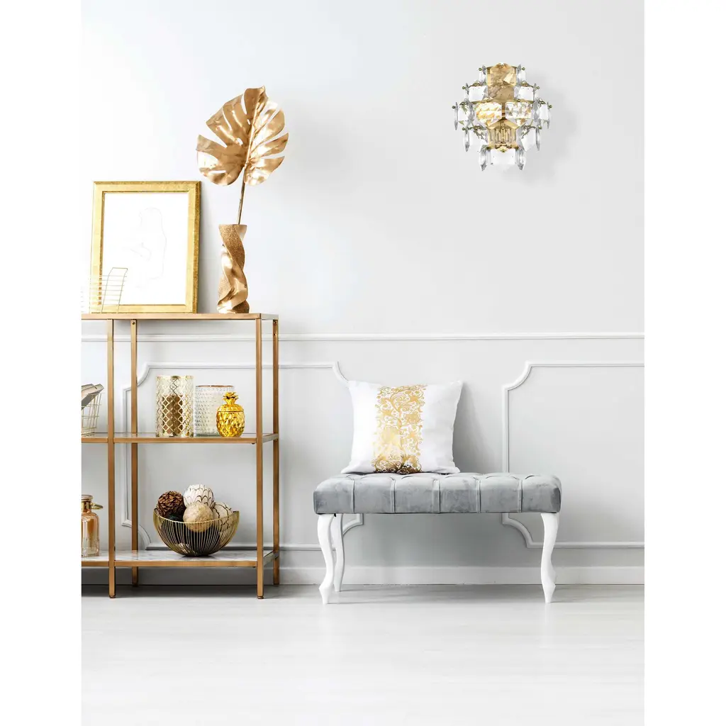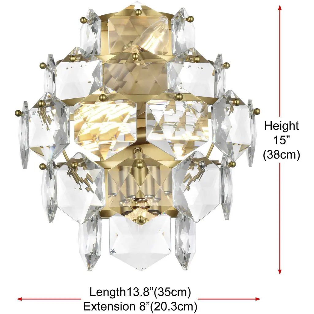 Add a touch of sophistication and shine to your space with this cascading crystal wall sconce light. Designed with a multi-tier arrangement of six-sided faceted crystals, this fixture creates a mesmerizing interplay of light and shadow, making it a standout addition to any room. Its sturdy iron frame is paired with your choice of a chrome finish for a sleek, modern aesthetic or satin gold for a warm, opulent feel. The fixture includes four E12 sockets (bulbs sold separately) and is fully dimmable, giving you the ability to set the perfect ambiance. The matching canopy finish completes the cohesive look. Compact yet visually impactful, this wall sconce is ideal for hallways, dining rooms, living rooms, bedrooms, or offices, offering both functional illumination and a dazzling decorative element.
