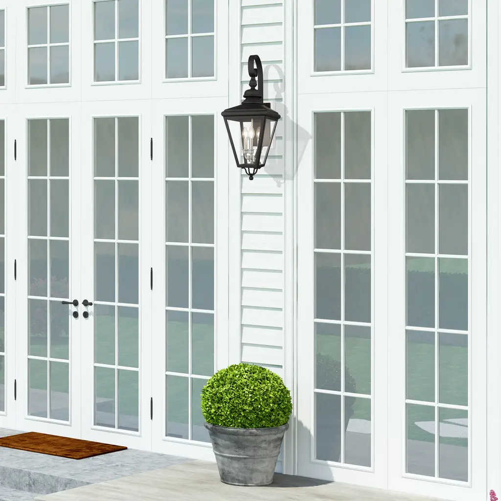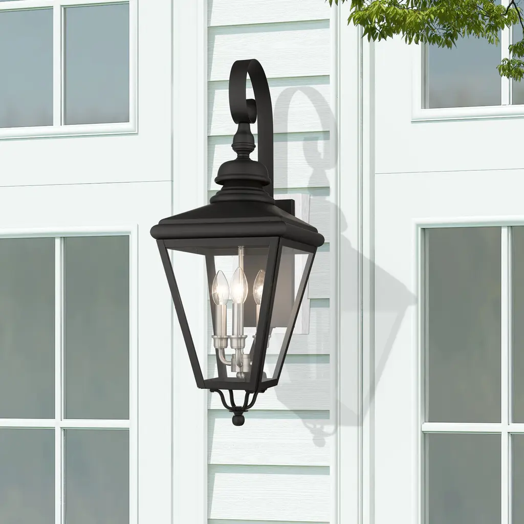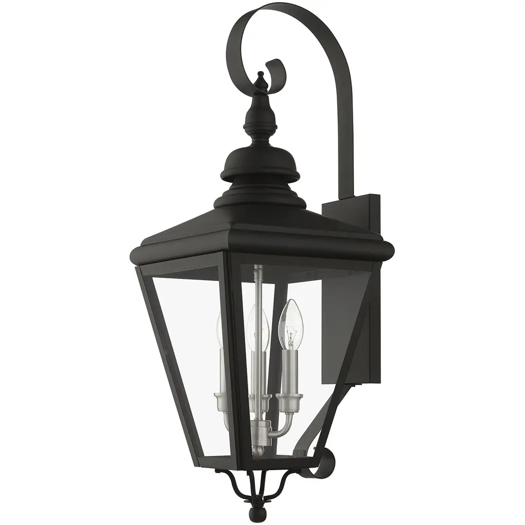 3 Light Black Outdoor Large Wall Lantern with Brushed Nickel Finish Cluster