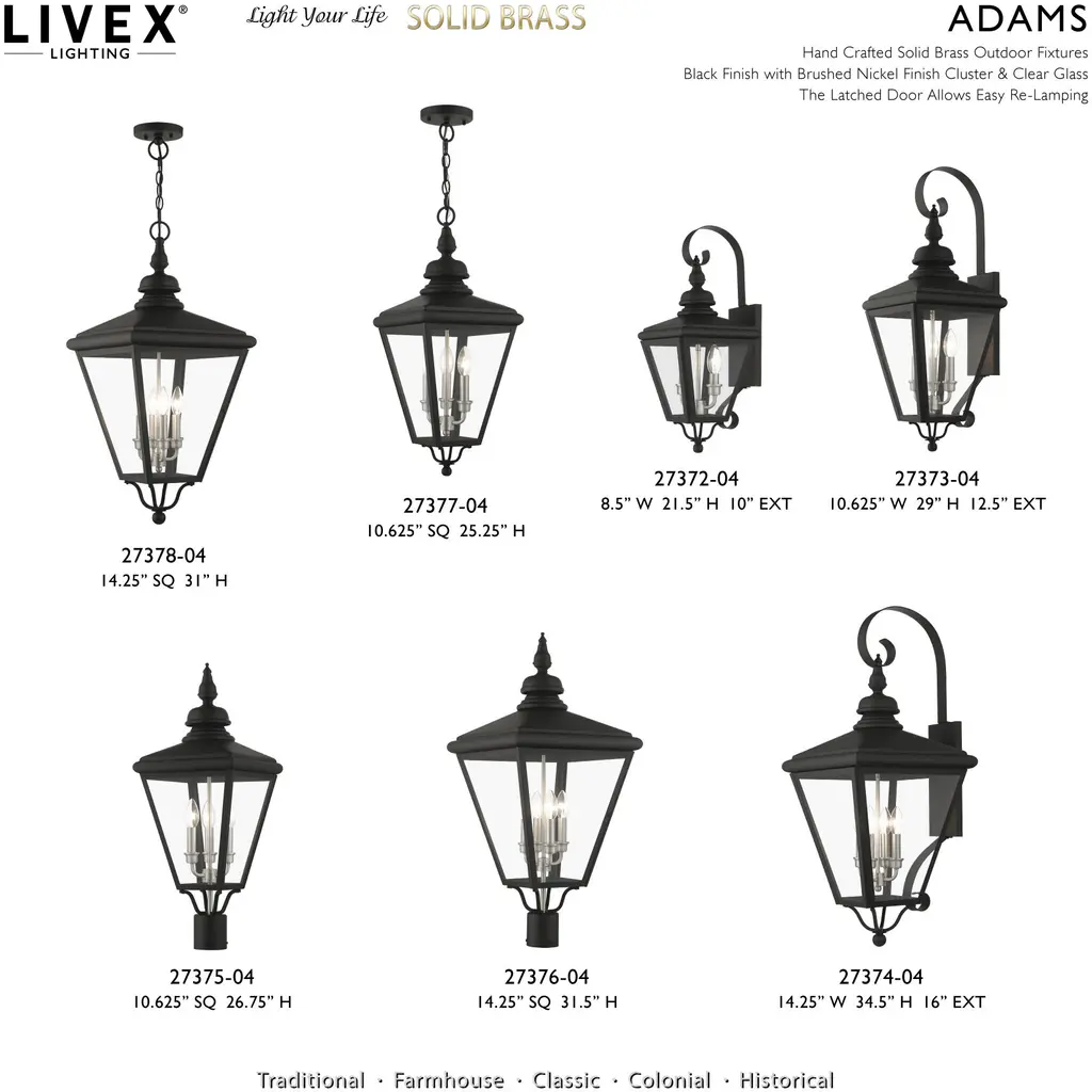 Adams 3 Light 10.63 Inch Black With Brushed Nickel Finish Cluster Outdoor Large Wall Lantern Wall Light