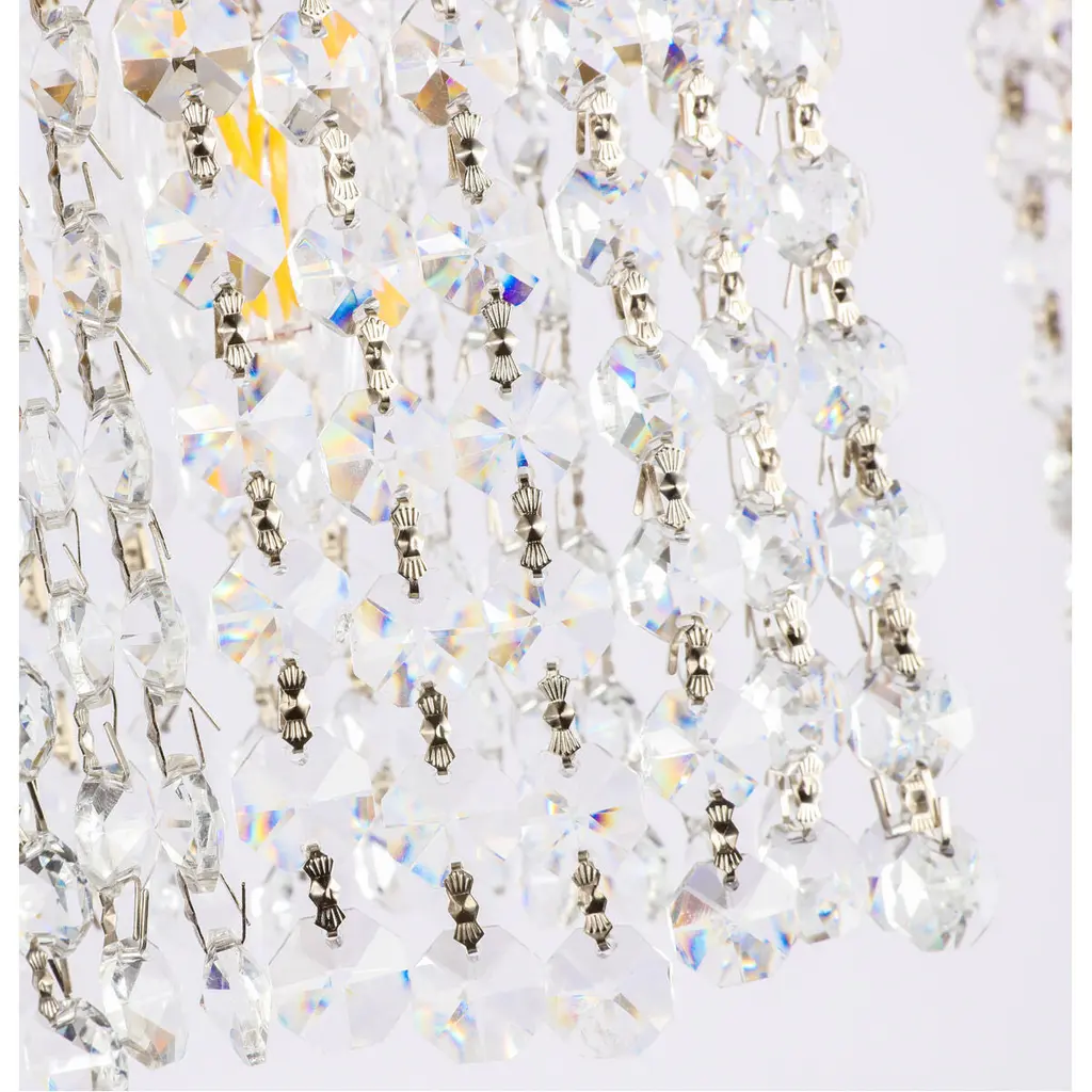 The Adams Collection of lights always exude elegance and sparkling beauty-and why wouldn't it, with its beautiful curtains of clear crystal strands that shimmer with each passing second as light passes through? Available in a stunning brass or chrome finish, not only will your home be illuminated, your guests will be charmed and in awe of the dancing crystal lights, and you will be pleased with how this wall lamp can elevate any room into a luxurious and glamourous world (light bulbs not included).