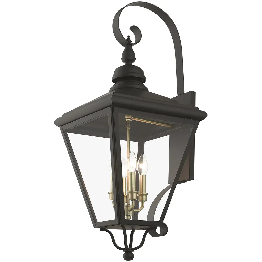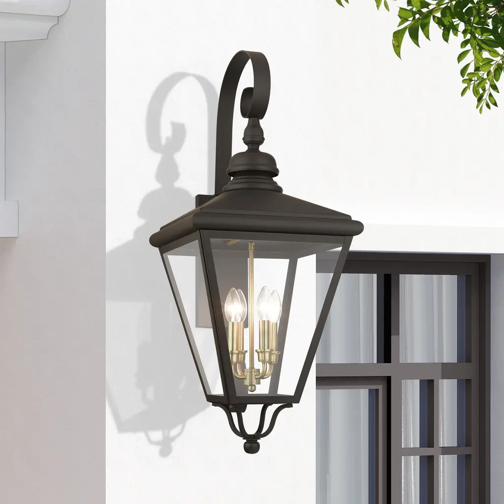 4 Light Bronze Outdoor Extra Large Wall Lantern with Antique Brass Finish Cluster