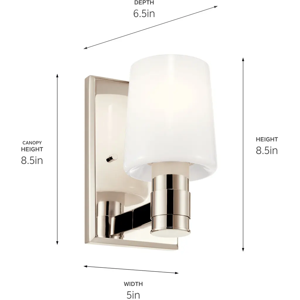 Adani 8.5 Inch 1 Light Vanity with Opal Glass in Polished Nickel