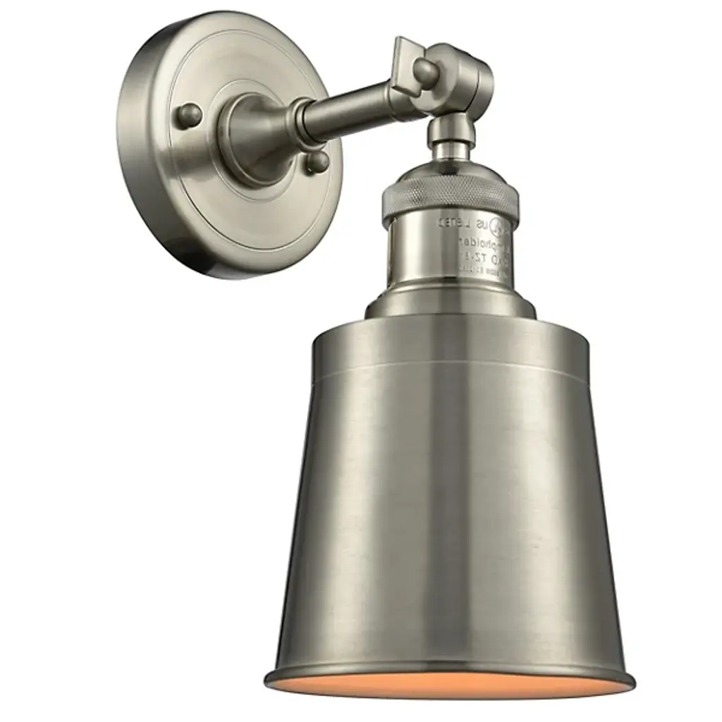 One of our largest and original collections, the Franklin Restoration is made up of a vast selection of heavy metal finishes and a large array of metal and glass shades that bring a touch of industrial into your home.Features:Solid brass 180 degree adjustable swivel with internal teeth that lock in at 5 degree intervals with engraved cast cupFixture can be hung with bulbs facing up or down as a wall mount or facing down as a ceiling mount4.5 inch 2mm heavy cast backplateThe interior finish of the shade matches the exterior finish of the shadeDistance from outlet opening to top of fixture 2.25 inchesRated for 100 watt maximumUL/CUL Damp RatedCompatible with Incandescent, LED, Fluorescent and Halogen bulbsNumber of Bulbs: 1Bulb Wattage: 3.5Bulb Type: LEDBulb Included: IncludedVoltage: 120Finish: Polished Nickel Finish Shade Finish: Polished Nickel Shade