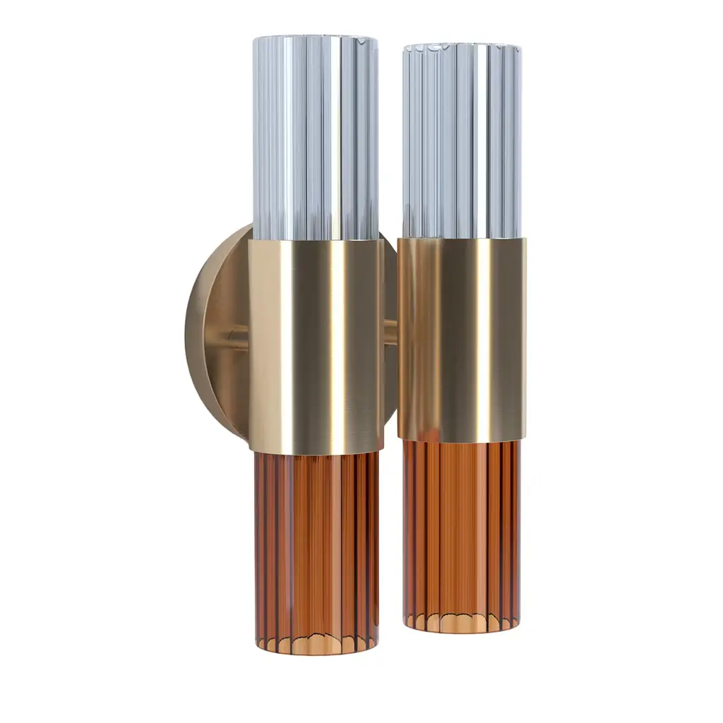 The Addison Wall Sconce from Seascape Lamps adds bold brightness and natural presence to wall spaces with a balanced dual shade that casts an expressive ambiance. A contemporary design made with care in the USA, the slender metal support structure is softened by the use of natural materials in its two cylinder shades, and it can be mounted vertically or horizontally, depending on what sort of illumination is desired. The natural shade textures mean that no two are alike, casting a unique ambiance while the open ends of each deliver a focused wall wash wherever they are aimed.