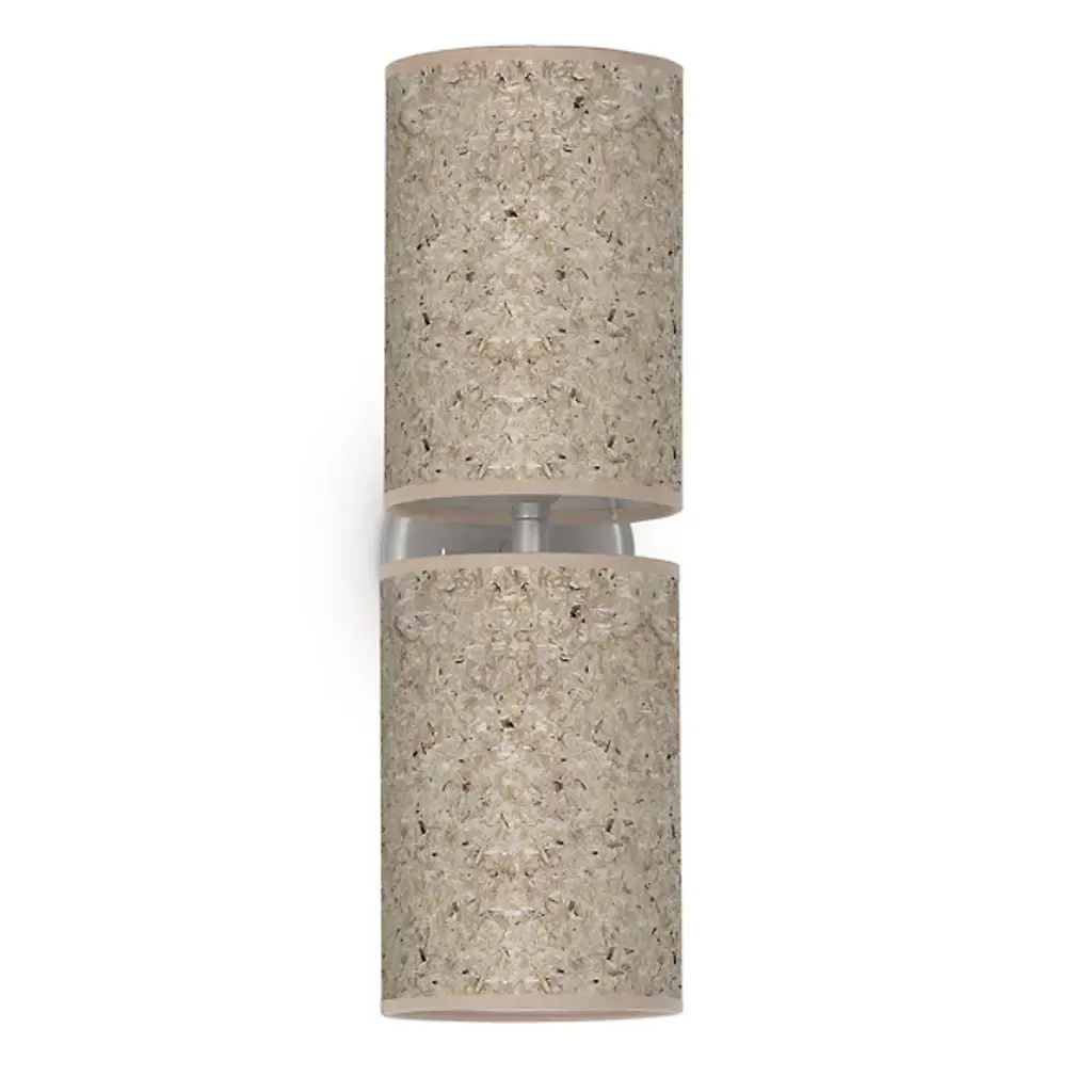The Addison Wall Sconce from Seascape Lamps adds bold brightness and natural presence to wall spaces with a balanced dual shade that casts an expressive ambiance. A contemporary design made with care in the USA, the slender metal support structure is softened by the use of natural materials in its two cylinder shades, and it can be mounted vertically or horizontally, depending on what sort of illumination is desired. The natural shade textures mean that no two are alike, casting a unique ambiance while the open ends of each deliver a focused wall wash wherever they are aimed.