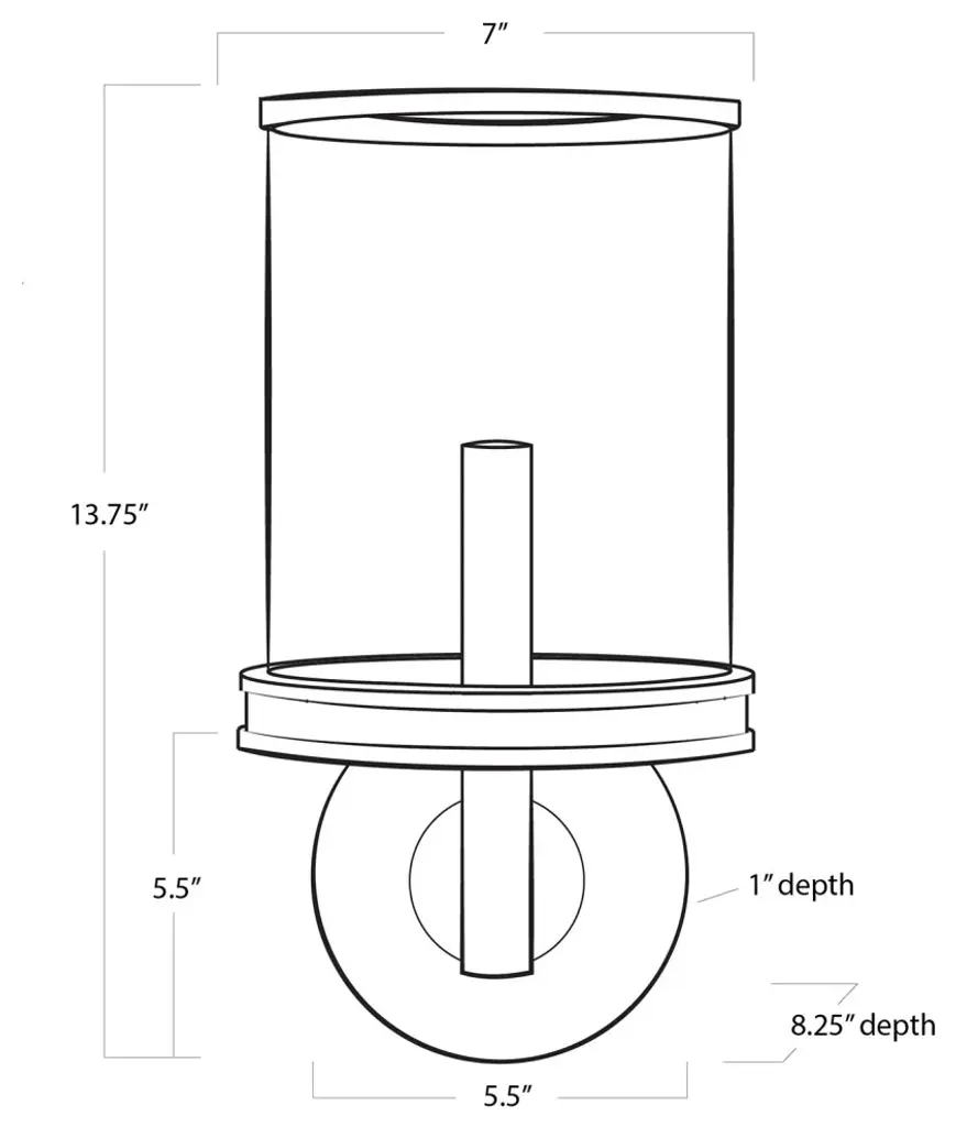 Adria Sconce (Natural Brass); Dimensions 7W x 13.75H x 8.25D; Uses one maximum 60 Watt E12 Base Bulb (Not Included). ETL/CETL Certified. Dry rated. Hardwire only