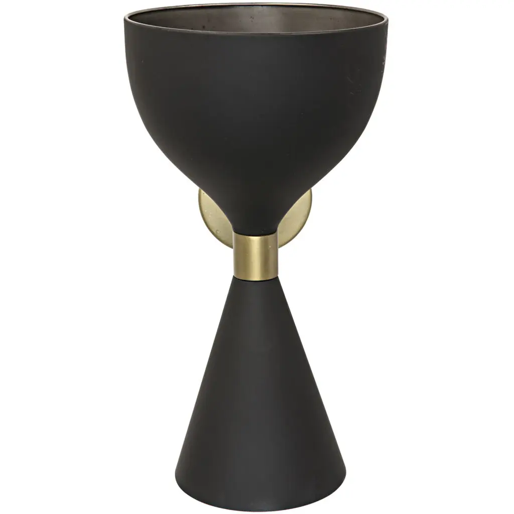 This curvy hourglass shaped sconce's contemporary lines make it the ideal addition to a modern decor. Dual finishes, in black and antique brass provide additional interest.