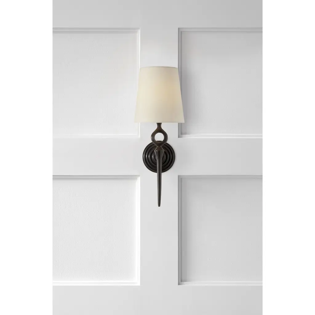 Bristol Single Sconce in Aged Iron with Linen Shade