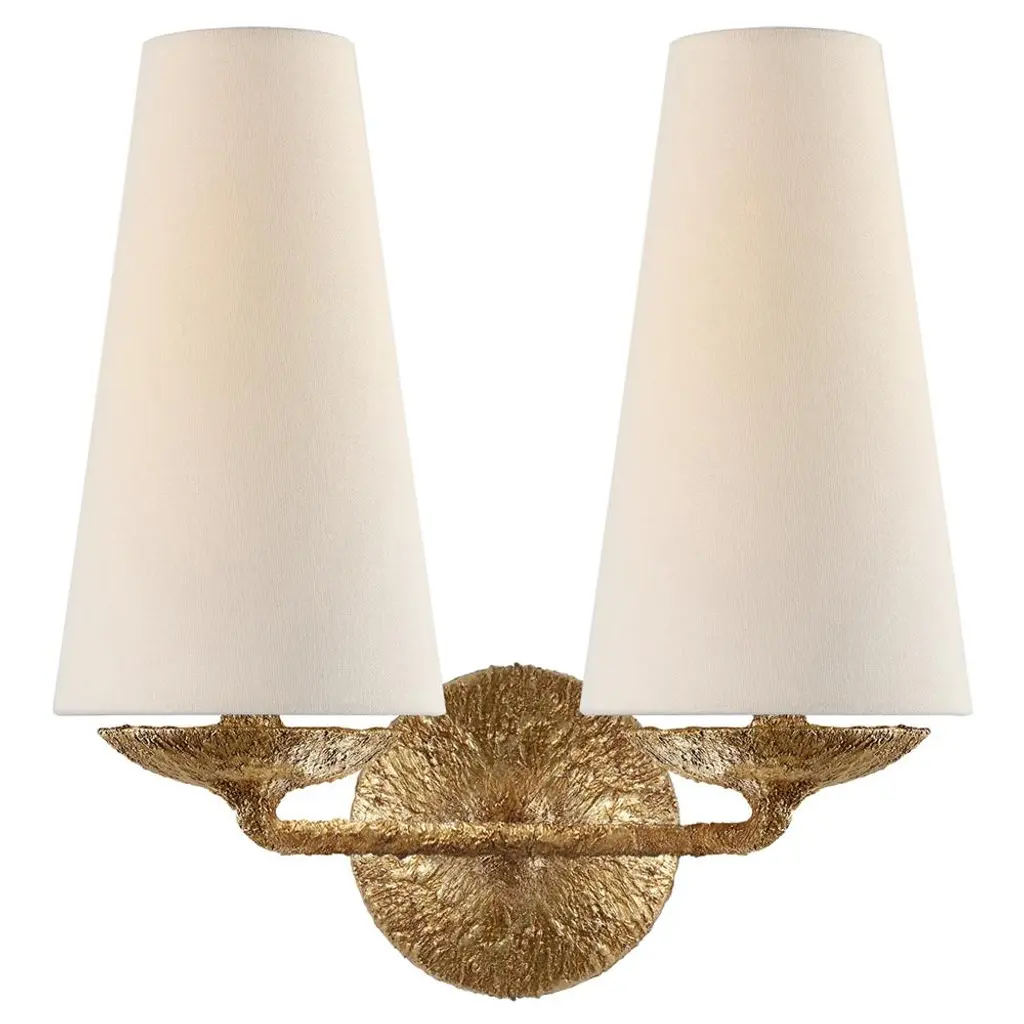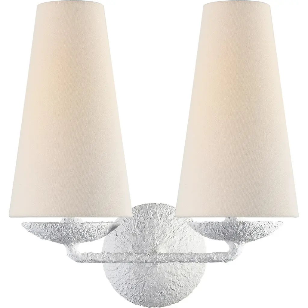 Fontaine Double Sconce in Plaster with Linen Shades