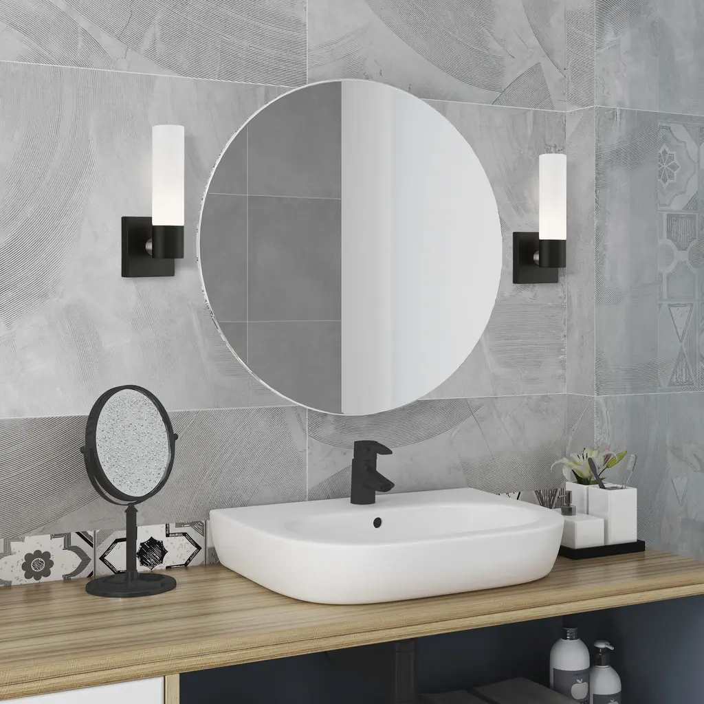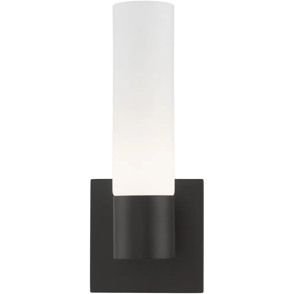 With the sleek contemporary design, the Aero bath sconce casts a soft, flattering light as the tubular etched opal glass diffuses the light of one lamp.