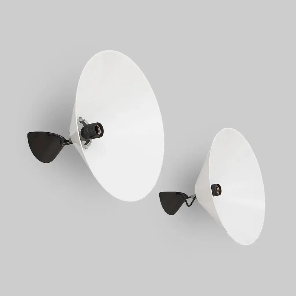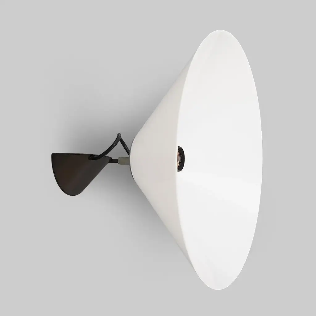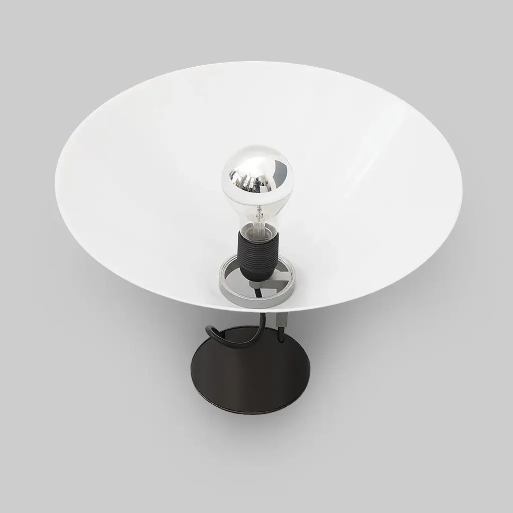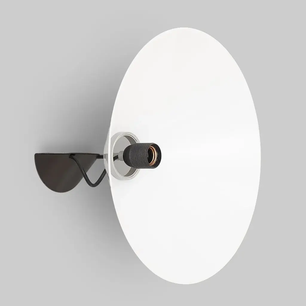 Pair of wall lamps of Italian manufacture produced by Artemide in the 70s designed by Enzo Mari. Wall support in black painted metal and plastic. Stem in burnished metal. Lamp body in aluminum. Diffuser in white plastic. Good general condition, small signs of use. Dimensions: Diameter 38 cm - Depth 26 cm I have official proof of authenticity such as vintage catalogs, designer records, or other literature sources and take full responsibility for any authenticity issues arising from misattribution, European Plug (up to 250V).The wiring of this item may be original and might need replacement, if not specified otherwise.