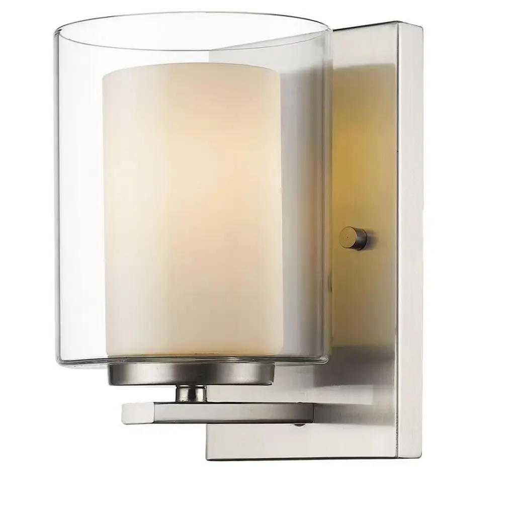 Sleek and contemporary, the Aideen collection incorporates rectangular and square shapes to achieve its cutting edge design. Matte opal shades are paired with a choice of three finishes which include Brushed Nickel, Chrome, and a modern Bronze and Gold combination.