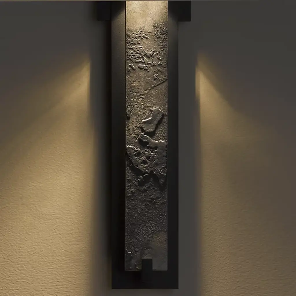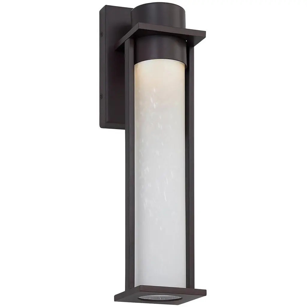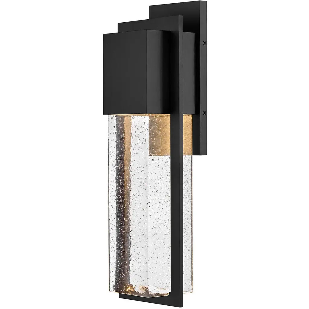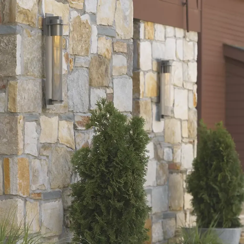 Dynamic dance of light and texture. The Airis Coastal Outdoor Wall Sconce by Hubbardton Forge offers dramatic lighting to spruce up your backyard, patio, and entryway. Backed by a rectangular wall plate, it holds a sleek cylindrical glass shade below the concealed light source to cast a bright downlighting that creates interesting shadows around the luminaire. The frame is hand-forged from robust aluminum and treated with a coastal finish to endure humid and salty air without rusting.