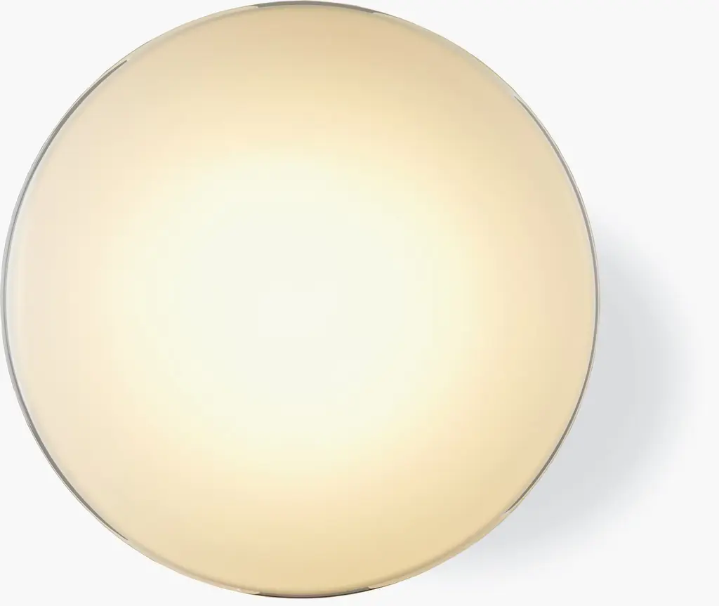 Copenhagen native Arne Jacobsen was among the first to introduce modern furniture to Denmark. He designed AJ Eklipta (1959) for Rødovre Town Hall, where it was used for staircases and walls indoors and out. Featuring a hand-blown three-layer opal glass diffuser with transparent rim, it emits soft, uniform light with a decorative halo around the edge. Bulbs (not included): T4/G9, 40W max for small; A19/E26, 60W or 100W max for medium or large, respectively. Made in Denmark.