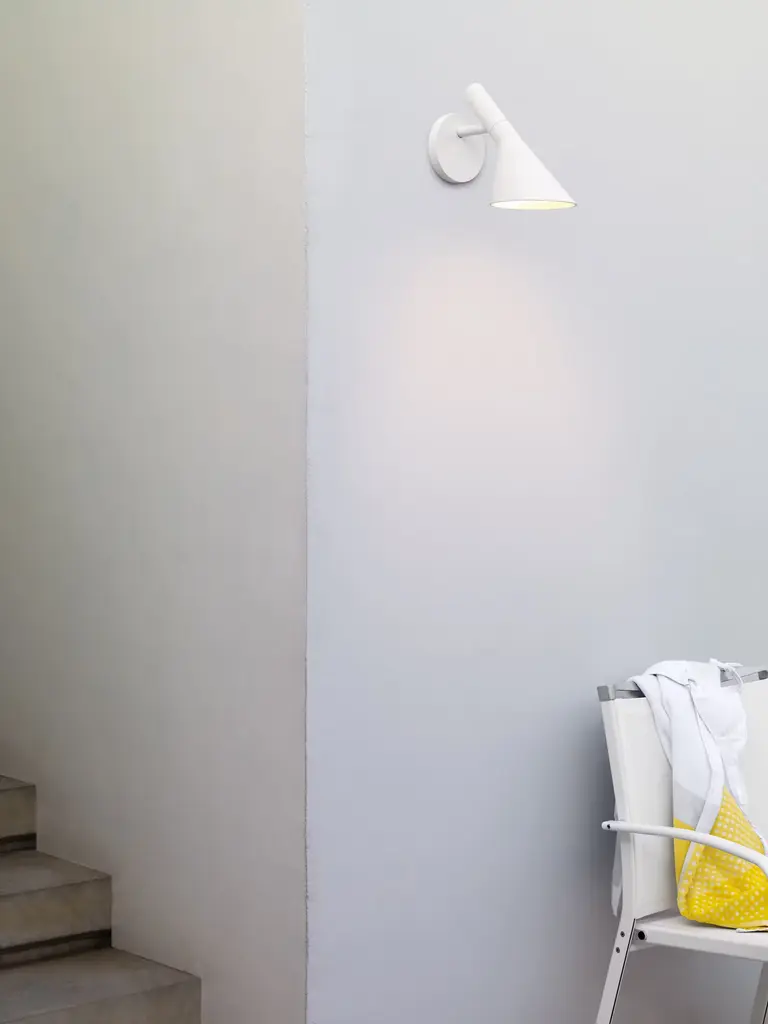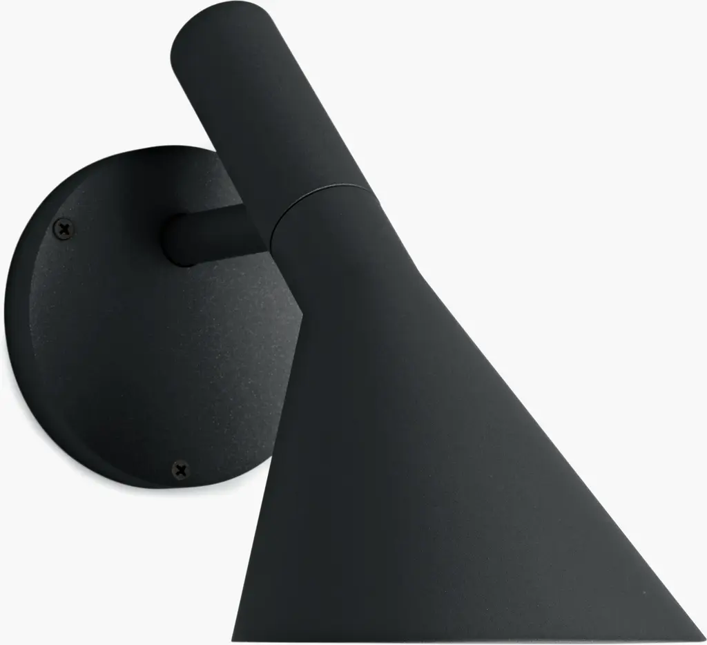 Arne Jacobsen created his AJ Lamp (1960) to echo the oblique angles of his Series 3300 furniture, which included the Egg Chair and the Swan Chair. To maximize the lamp's functionality, Jacobsen created a shade that tilts up or down, directing maximum light to where it's needed. The shade rotates 60 degrees to either side. Like the Swan and Egg chairs, the AJ Lamp was designed for the SAS Royal Hotel in Copenhagen, for which Jacobsen designed every element, from the skyscraper structure to the stainless steel cutlery. This striking sconce employs 50 high-efficiency, long-lasting LEDs to project uniform light while saving energy and providing years of operation. UL Listed for outdoor use. Made in Denmark.