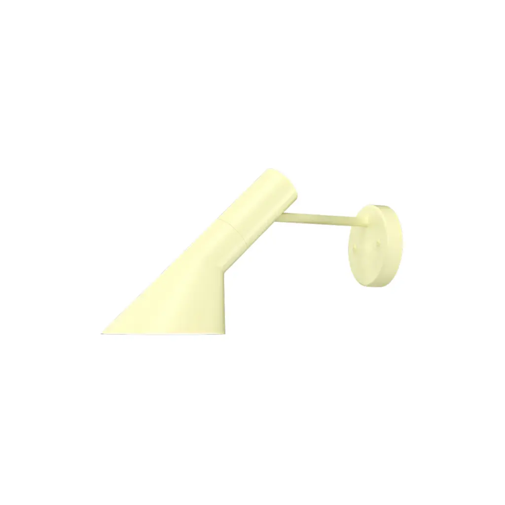 The AJ Wall Lamp by Louis Poulsen, designed by Arne Jacobsen in 1957, was created for the SAS Royal Hotel in Copenhagen. This fixture is renowned for its clean, distinguished shape and the pleasant, downward-directed light it provides, thanks to its white painted inner shade. The shade can also be tilted to adjust light distribution, enhancing its functionality.