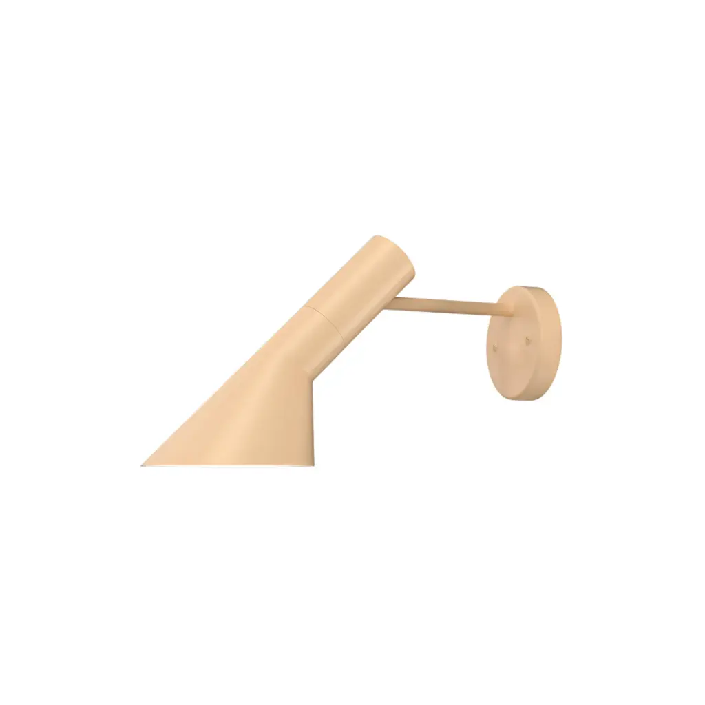 The AJ Wall Lamp by Louis Poulsen, designed by Arne Jacobsen in 1957, was created for the SAS Royal Hotel in Copenhagen. This fixture is renowned for its clean, distinguished shape and the pleasant, downward-directed light it provides, thanks to its white painted inner shade. The shade can also be tilted to adjust light distribution, enhancing its functionality.