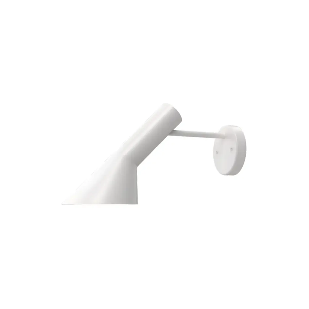 The AJ Wall Lamp by Louis Poulsen, designed by Arne Jacobsen in 1957, was created for the SAS Royal Hotel in Copenhagen. This fixture is renowned for its clean, distinguished shape and the pleasant, downward-directed light it provides, thanks to its white painted inner shade. The shade can also be tilted to adjust light distribution, enhancing its functionality.