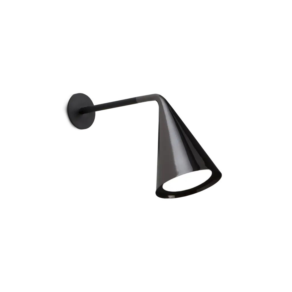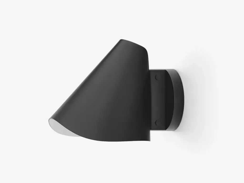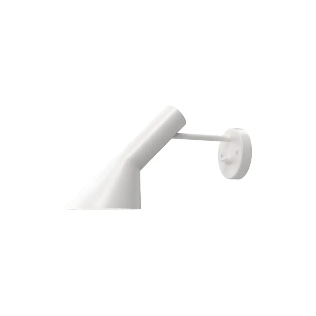 The AJ Wall Lamp by Louis Poulsen, designed by Arne Jacobsen in 1957, was created for the SAS Royal Hotel in Copenhagen. This fixture is renowned for its clean, distinguished shape and the pleasant, downward-directed light it provides, thanks to its white painted inner shade. The shade can also be tilted to adjust light distribution, enhancing its functionality.