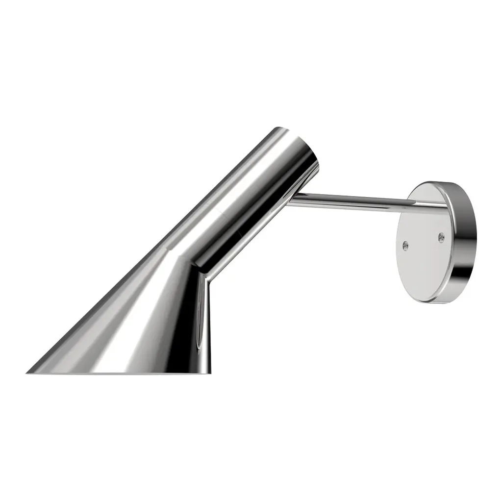 Arne Jacobsen designed the AJ Wall for the SAS Royal Hotel in Copenhagen, the lamp was part of the total design concept created for the hotel. Several of the products created for the hotel are regarded as design icons and within the lighting industry the AJ lamps in particular have obtained world-fame. AJ Wall has a fixture head with a distinct, asymmetrical shape, which determines the light characteristics of the fixture. The head is rotatable and can be turned 60 degrees to the sides. Integral on/off switch is located on the backplate. Can be used for accent or task illumination.