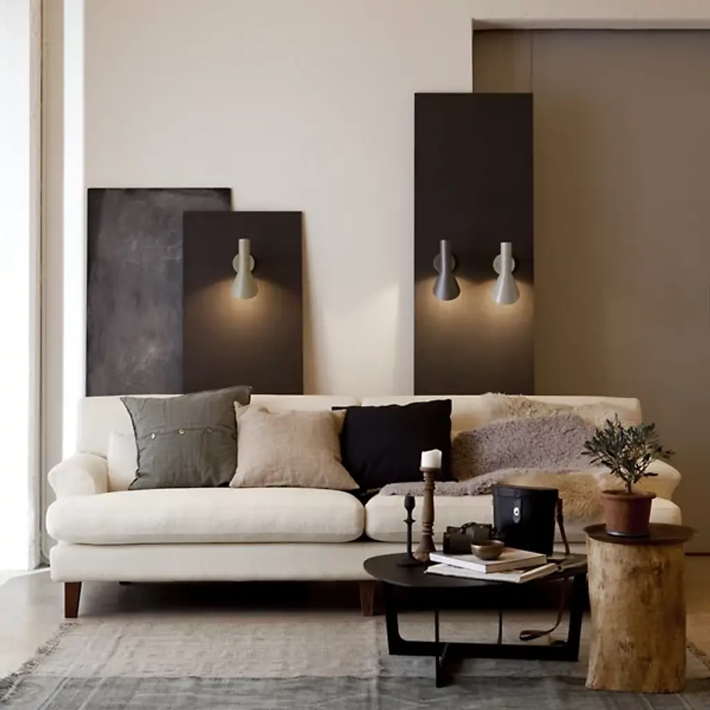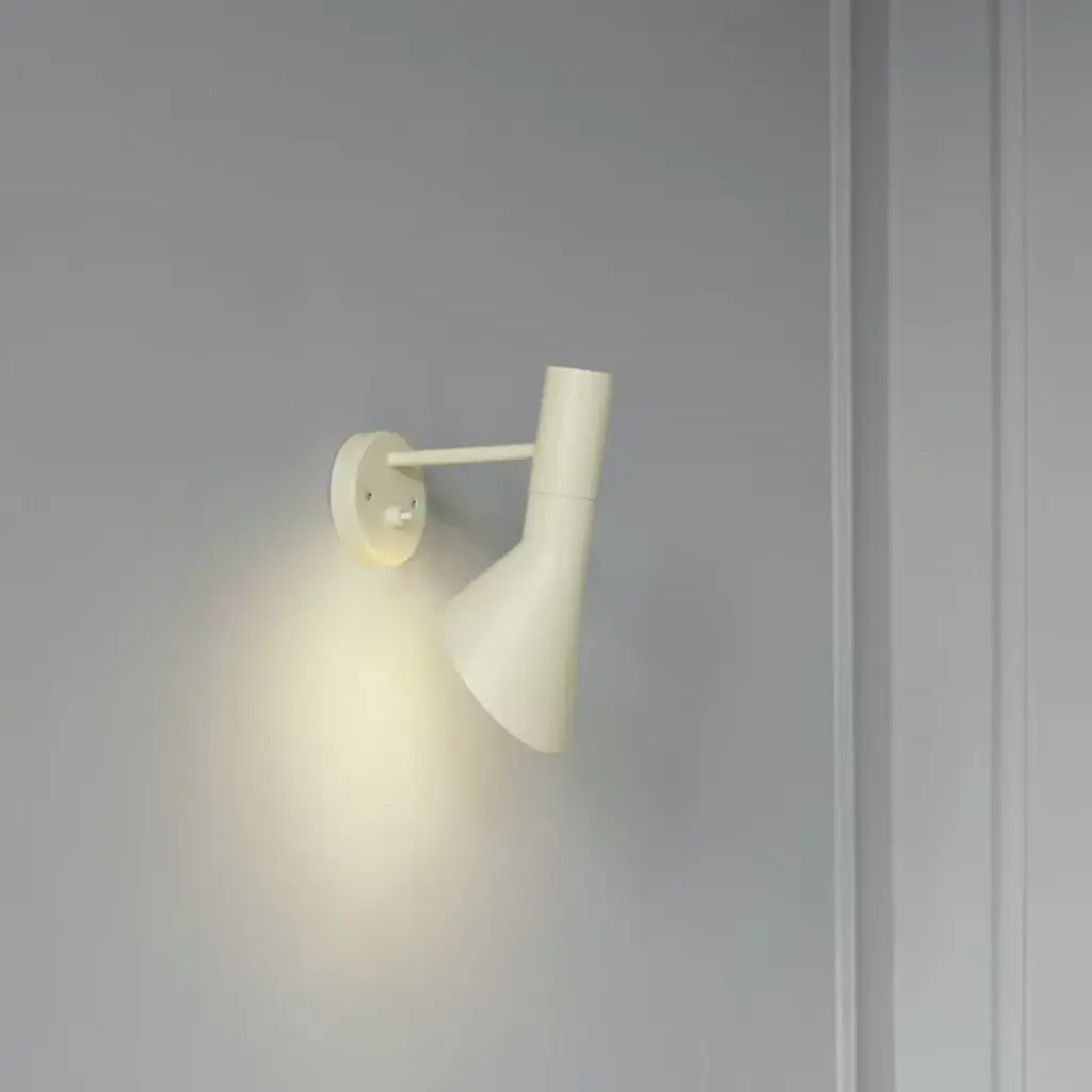 The AJ Wall Sconce by Louis Poulsen is an iconic light launched in 2010 as a tribute to the original 1960 AJ design. It was designed for the SAS Royal Hotel in Copenhagen. Each wall sconce features is a sleek, geometrical design that is reminiscent of triangles and sharp points. The head of the fixture can be rotated for the perfect direction of light. The product provides both indirect and direct illumination on any wall space. With a modern design, the AJ Wall Sconce perfect for bedrooms, living rooms, and dining rooms.