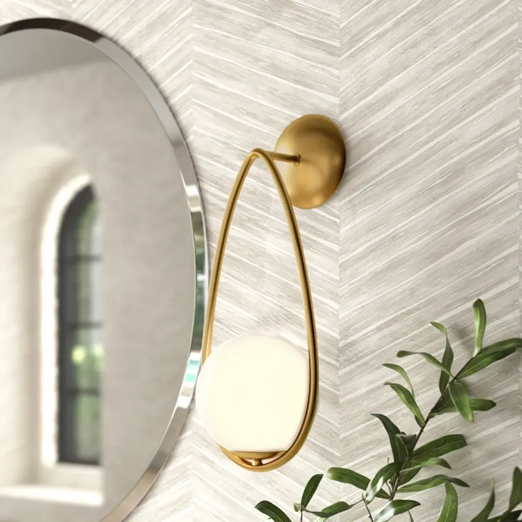 Our 1-light bath sconce brings helpful illumination to your bathroom or powder room while lending it a vintage-inspired vibe. Crafted from steel with a polished finish, the frame features a classic teardrop silhouette complete with a circular backplate and a curving arm. A frosted globe glass shade surrounds a bulb, which is sold separately and compatible with dimmer switches. It's also damp-rated, making it safe to install and use in high-moisture environments. Pro tip: Get two to flank your vanity mirror.