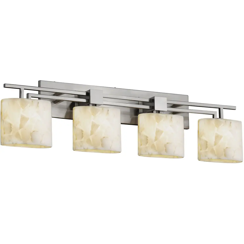 Alabaster Rocks!™ - Aero 4-Light LED Bath Bar - Square w/ Flat Rim Shade - Alabaster Rocks - Brushed Nickel - Dedicated LED