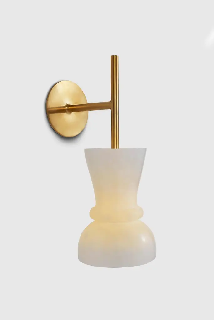 Alabaster Wall Light by HatsuDimensions: D 14 x W 11.5 x H 32.7 cmMaterials: Plated steel, alabaster.All our lamps can be wired according to each country. If sold to the USA it will be wired for the USA for instance.The different light shades available within the Alabaster Wall Light Series, along with sleek steel column make these lights versatile for every space. Customizable in different sizes and finishes, this alabaster wall light subtly diffuses a soft and magical glow.Hatsu is a design studio based in Mumbai that creates modern lighting that are unique and immediately recognizable. We started with an idea to make good design available to people and design products that are eclectic, romantic and minimal. We want to be progressive with our designs in such a way that they influence the users lives. There are three responses to a piece of design - yes, no and wow! Our aim is wow.
