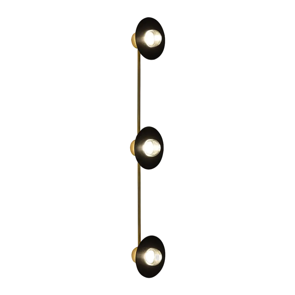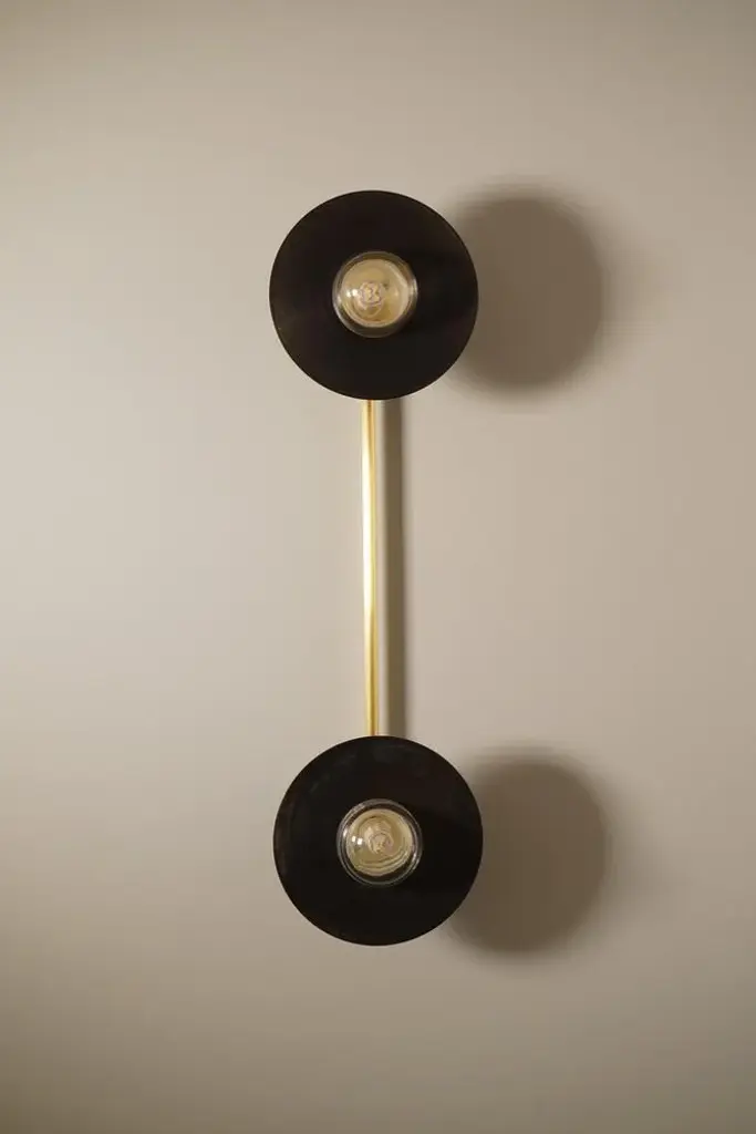 Alba triple wall angle light by contain. Dimensions: d15 x w85 x h11.5 cm angle 115 materials: brass, 3d printed pla structure and optical lens (15 cm ø x 85 cm x 11,5 cm / angle 115º also available in 22 cm ø x 85 cm x 11,5 cm / angle 115º). All our lamps can be wired according to each country. If sold to the usa it will be wired for the usa for instance. up to 250v (europe/uk standard).