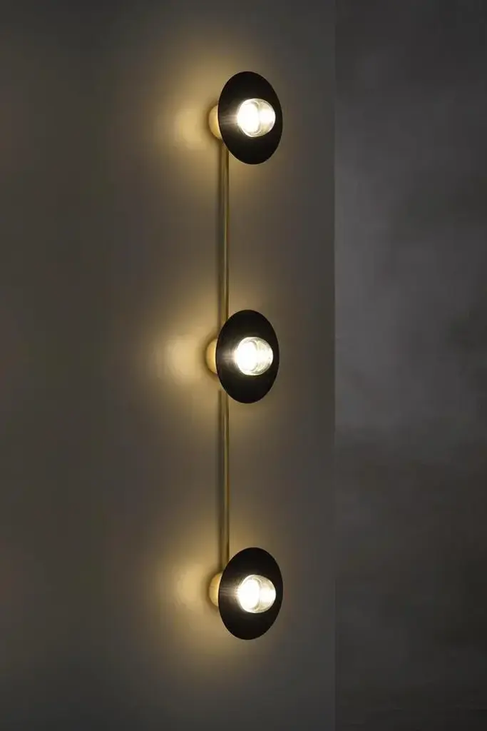 Alba triple wall light by contain dimensions: d15 x w100 x h11.5 cm materials: brass, 3d printed pla structure and optical lens also available in different finishes and dimensions (15 cm ø x 100 cm x 11,5 cm also available in 22 cm ø x 100 cm x 11,5 cm). up to 250v (europe/uk standard).