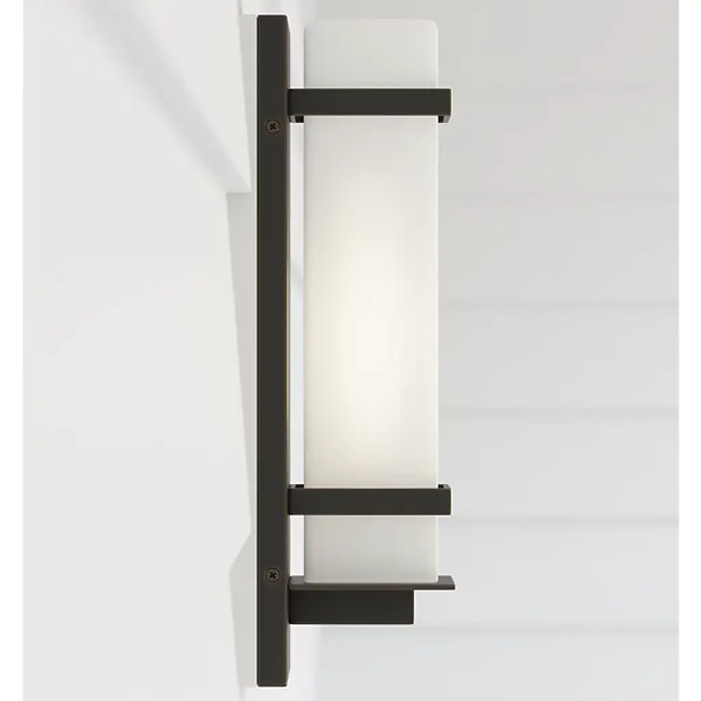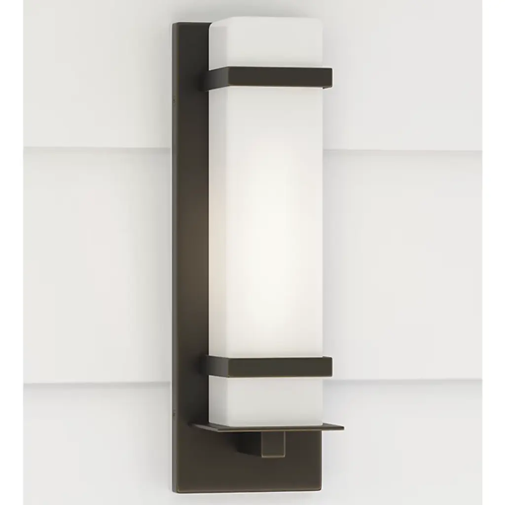 The straightforward design of the Alban Square Outdoor Wall Sconce from Generation Lighting, formerly known as Sea Gull Lighting, offers a timeless modern look with a touch of minimalist class. A low-profile rectangular wall mount of robust aluminum extends into a mounting post and two restraining bands for the opal etched glass shade. Designed to mellow and diffuse direct light while still dispensing enough to see by, the fixture is sure to brighten up a patio, driveway, or entryway while a damp rating ensures greater durability and long service.