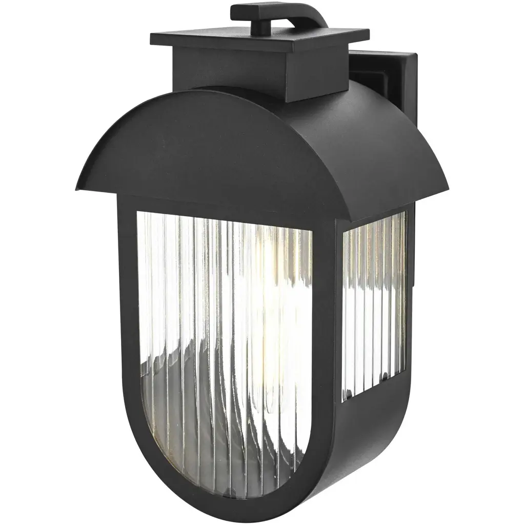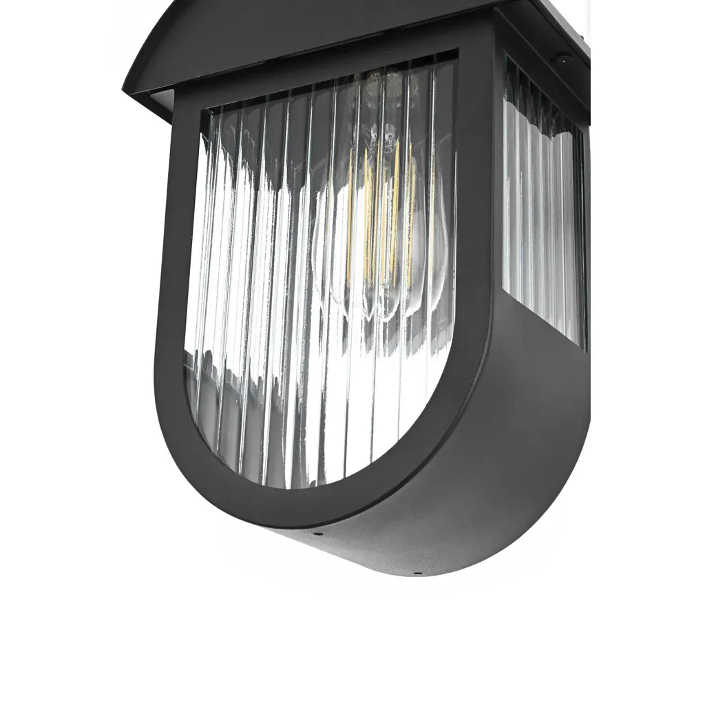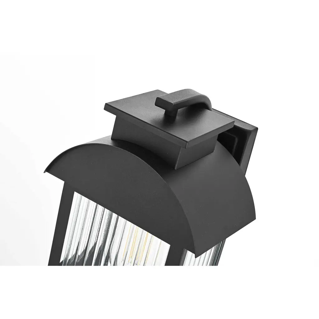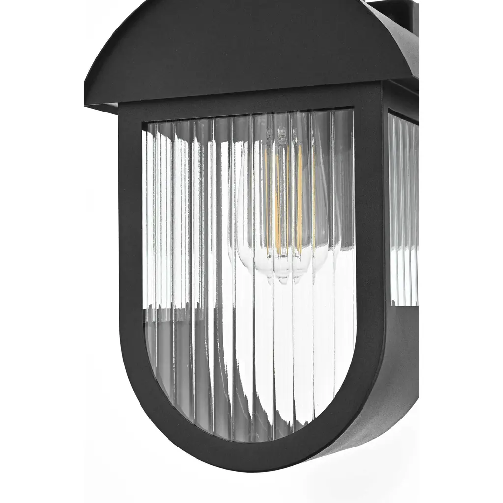 This outdoor wall sconce brings a bold blend of style and functionality to any space. The combination of iron and ribbed glass offers an eye-catching juxtaposition of smooth, industrial material with light-diffusing texture. The matte black finish and arching cover create a modern silhouette, which pairs well with a wide range of exteriors. The E26 socket further adds versatility, accommodating a variety of bulb types, allowing you to customize the mood of your space. This sconce's clean lines and sturdy build make it a sophisticated addition to patios, porches, and entryways, enhancing both safety and curb appeal.