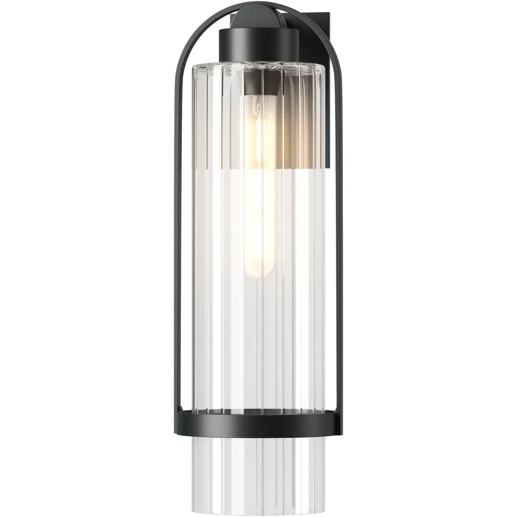 The Alcove Large Outdoor Sconce is a clean contemporary design that complements many architectural styles. The clear fluted glass disperses light in a subtle pattern, while the clean contemporary elemental forms made of hand-shaped aluminum are unified into a classic silhouette for this large wall mounted fixture. Offered with a choice of clear fluted or frosted glass.
