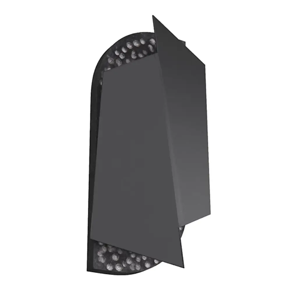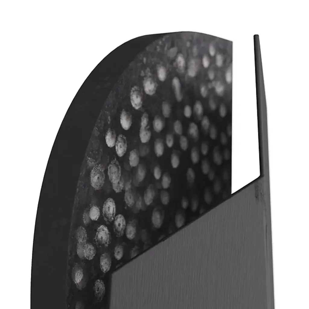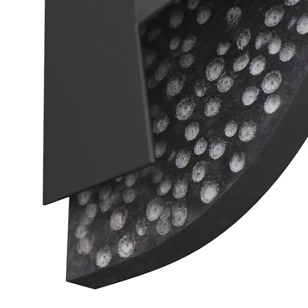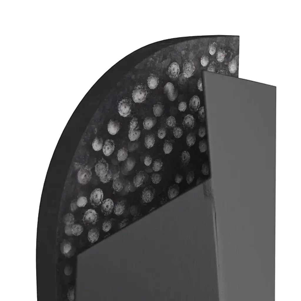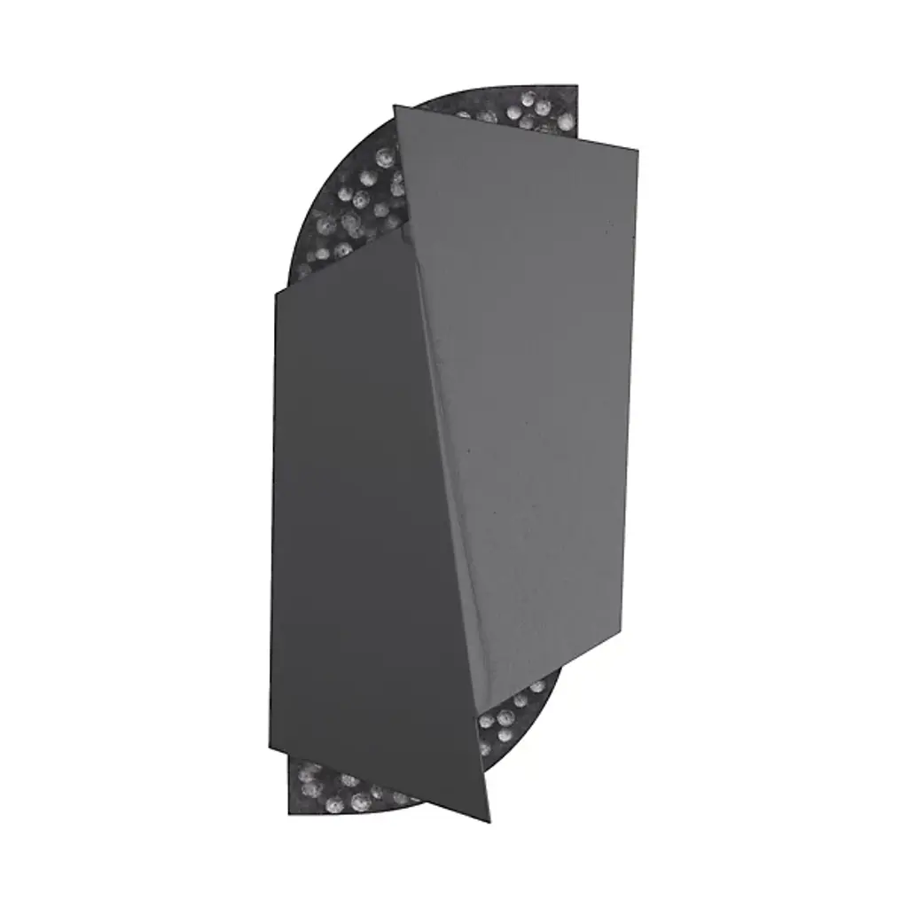 The Aldridge Wall Sconce from Arteriors captivates as a subtle deco demonstration of playful intersecting planes of waxed blackened iron and black chiseled marble, creating a striking, intriguing, and luminous aesthetic. Its intriguing lattice surface is designed to enhance the interplay of light, confined by the metalwork and reflecting off the chiseled marble dots to cast a soft and moody glow in any space. A nod to contemporary style and a touch of industrial directness, this sconce is damp-listed and ADA-compliant, crafted from iron and marble to achieve a perfect balance between luxury material and structural strength while also being practical.