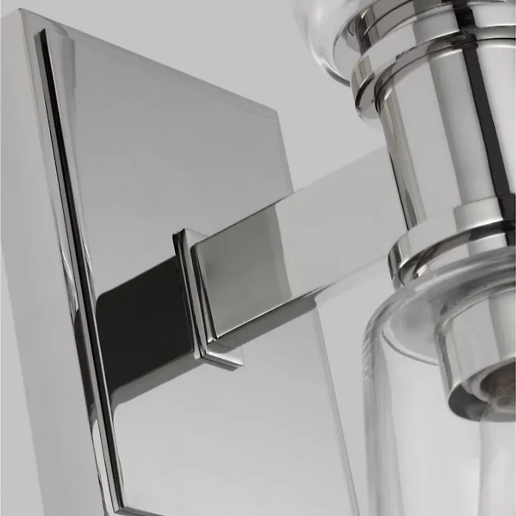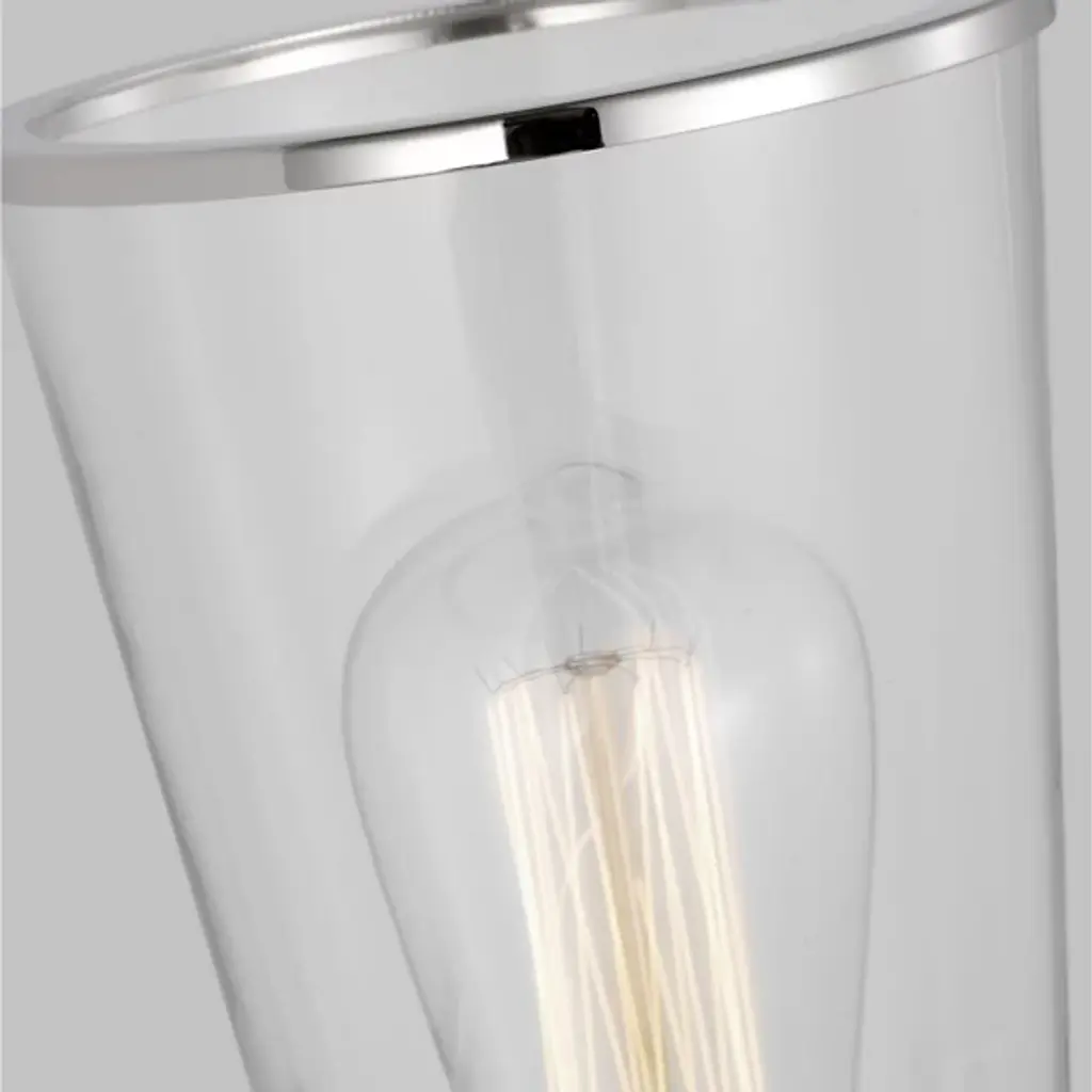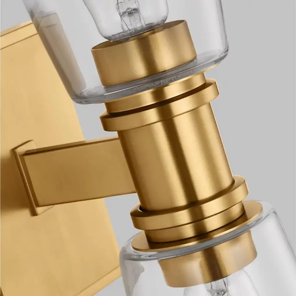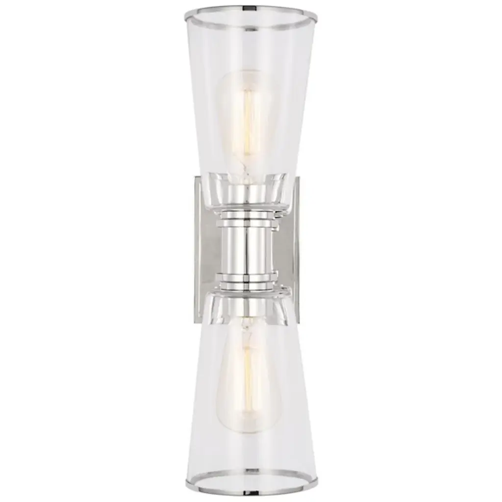 The Alessa 2-Light Wall Sconce from Visual Comfort Studio extends a stream of layered light on nearby surfaces above and below. Sporting clean geometry, this sconce looks natural in a modern or contemporary setting. A compact backplate helps the piece slot in tight areas. The intricate lamp holder at the center produces a pair of cone glass shades that pop visually with ring accents at their lip. The dual lamping setup funnels a rich glow suited for tasks and ambiance simultaneously.