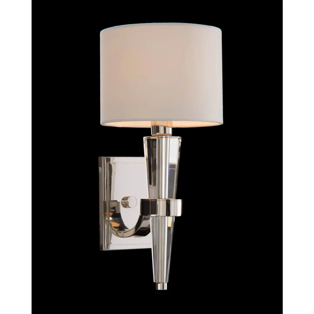 The AH Alexa Hampton Baxley wall sconce exudes elegance, bringing modern elements to a traditional silhouette. With an exaggerated stem capped with a crystal ball, this sconce makes a bold, sleek statement and will align nicely in your hallway or as a bath vanity. This fixture is offered in burnished brass or polished nickel finish. Alexa Hampton with her new AH Alexa Hampton Collection that features fresh takes on traditional looks, beautiful and unique hand applied finishes, and stunning thoughtful inspired pieces. Features
