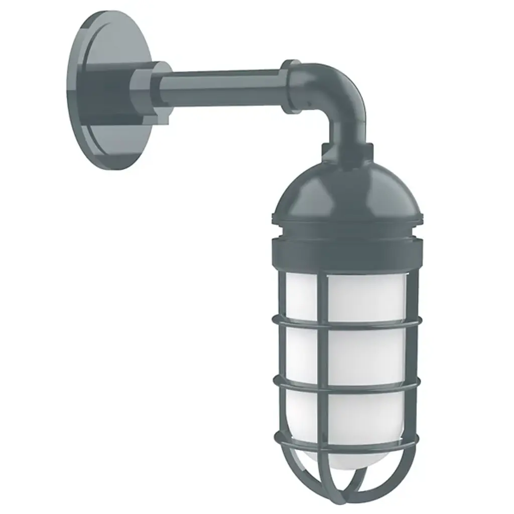 A charmer evoking the rugged fixtures of the coast. While compact in scale, the Alexia Outdoor Wall Sconce from Alder & Ore adds a big personality to the home’s exterior. Sitting against the wall with an elegant circular backplate, the sconce factors in beautifully at an entryway or façade. It catches the eye from the side as its arm leans forward in a charming arch. Protecting its light source together with the striking hood, a heavy-duty aluminum cage presents a bold silhouette with or without the lights on. Glass fills in the cage, giving the light a diffused feel. The sconce’s light is ideal for creating a warm, welcoming ambiance.
