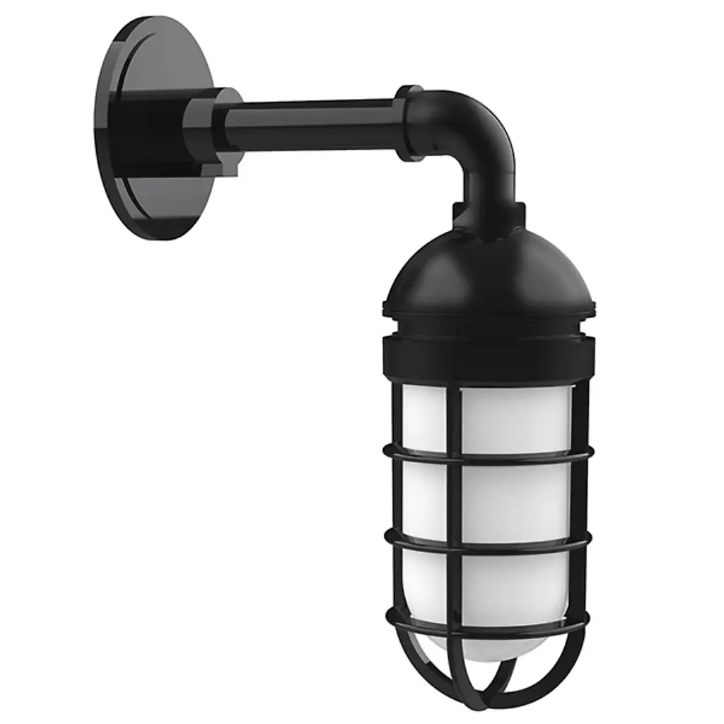 A charmer evoking the rugged fixtures of the coast. While compact in scale, the Alexia Outdoor Wall Sconce from Alder & Ore adds a big personality to the home’s exterior. Sitting against the wall with an elegant circular backplate, the sconce factors in beautifully at an entryway or façade. It catches the eye from the side as its arm leans forward in a charming arch. Protecting its light source together with the striking hood, a heavy-duty aluminum cage presents a bold silhouette with or without the lights on. Glass fills in the cage, giving the light a diffused feel. The sconce’s light is ideal for creating a warm, welcoming ambiance.
