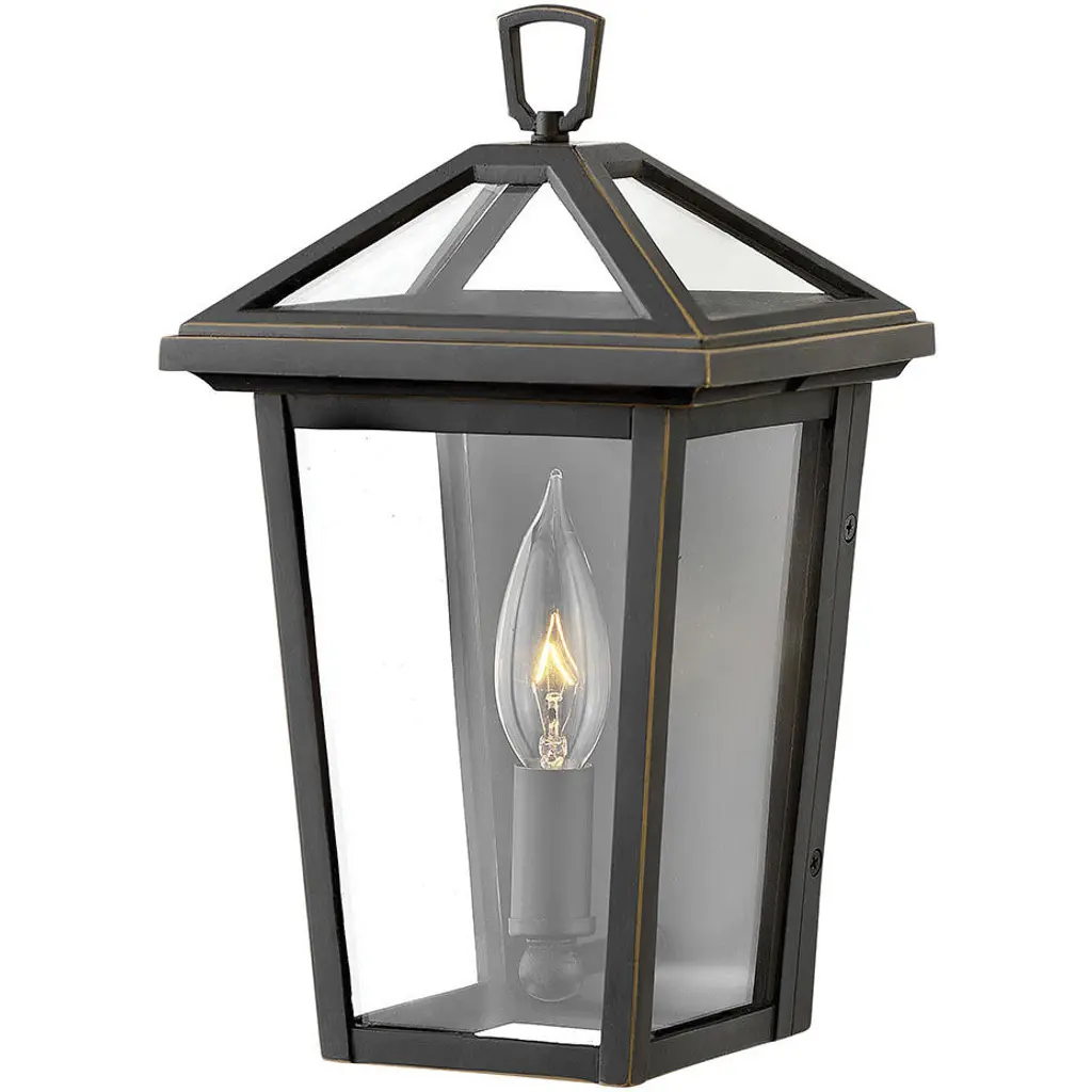 The Alford Place Extra Small Outdoor Wall Sconce by Hinkley Lighting is durably built for use in the great outdoors. The fixture can withstand the harsh elements of mother nature using its die-cast frame. The piece utilizes components like a hanging arm and top loop along with a sealed glass roof to allow the piece ideal longevity in exterior settings. The fixture utilizes incandescent lamping that works with 3 panels of clear glass to emit a warm and comforting lighting aura.